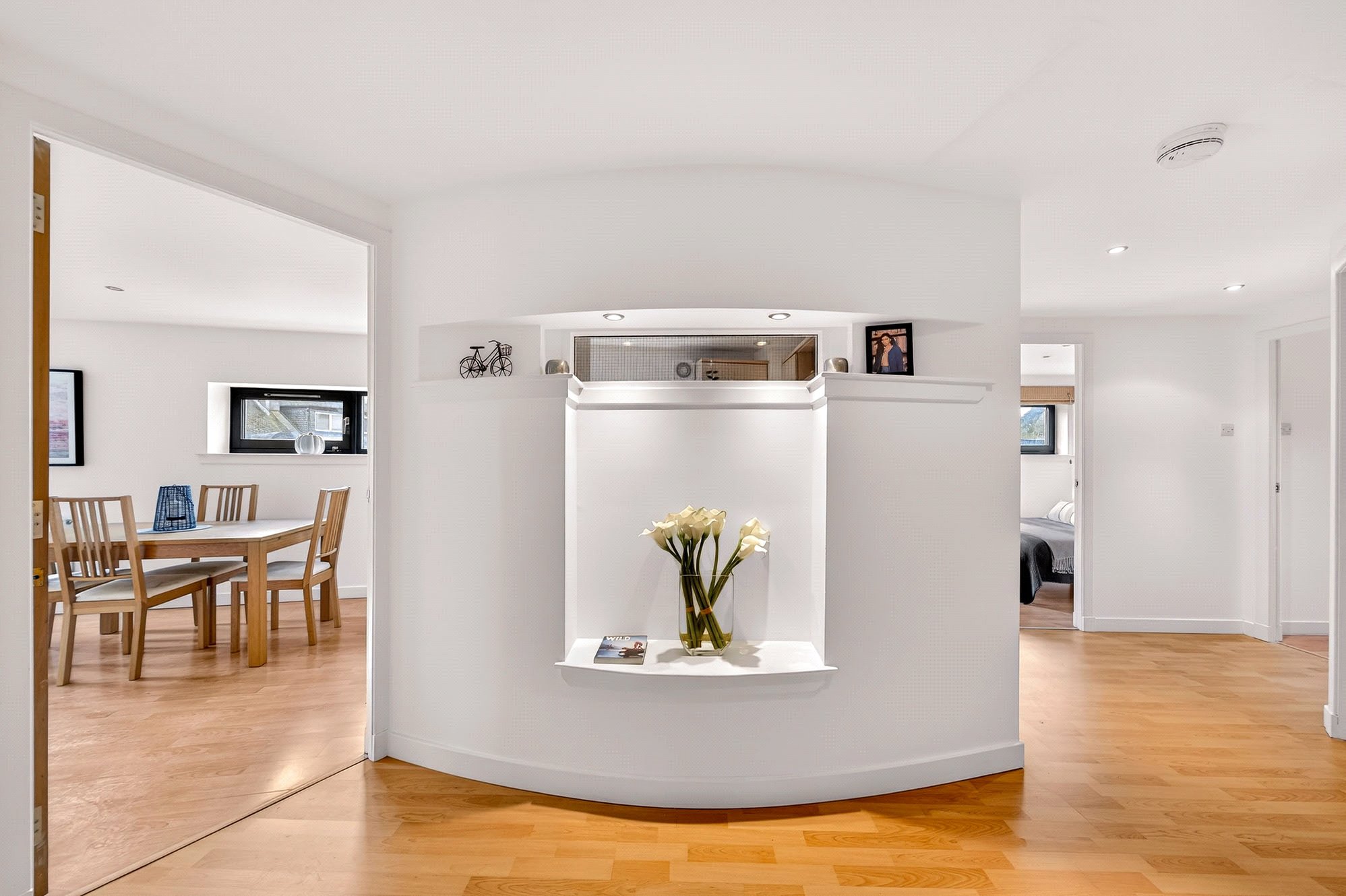 The property comprises two well-sized bedrooms, including a particularly generous principal bedroom with the added benefit of an en-suite shower room. The second bedroom is ideal as a guest room, home office or additional living space. A contemporary bathroom and useful hall storage further enhance the practicality of the flat.