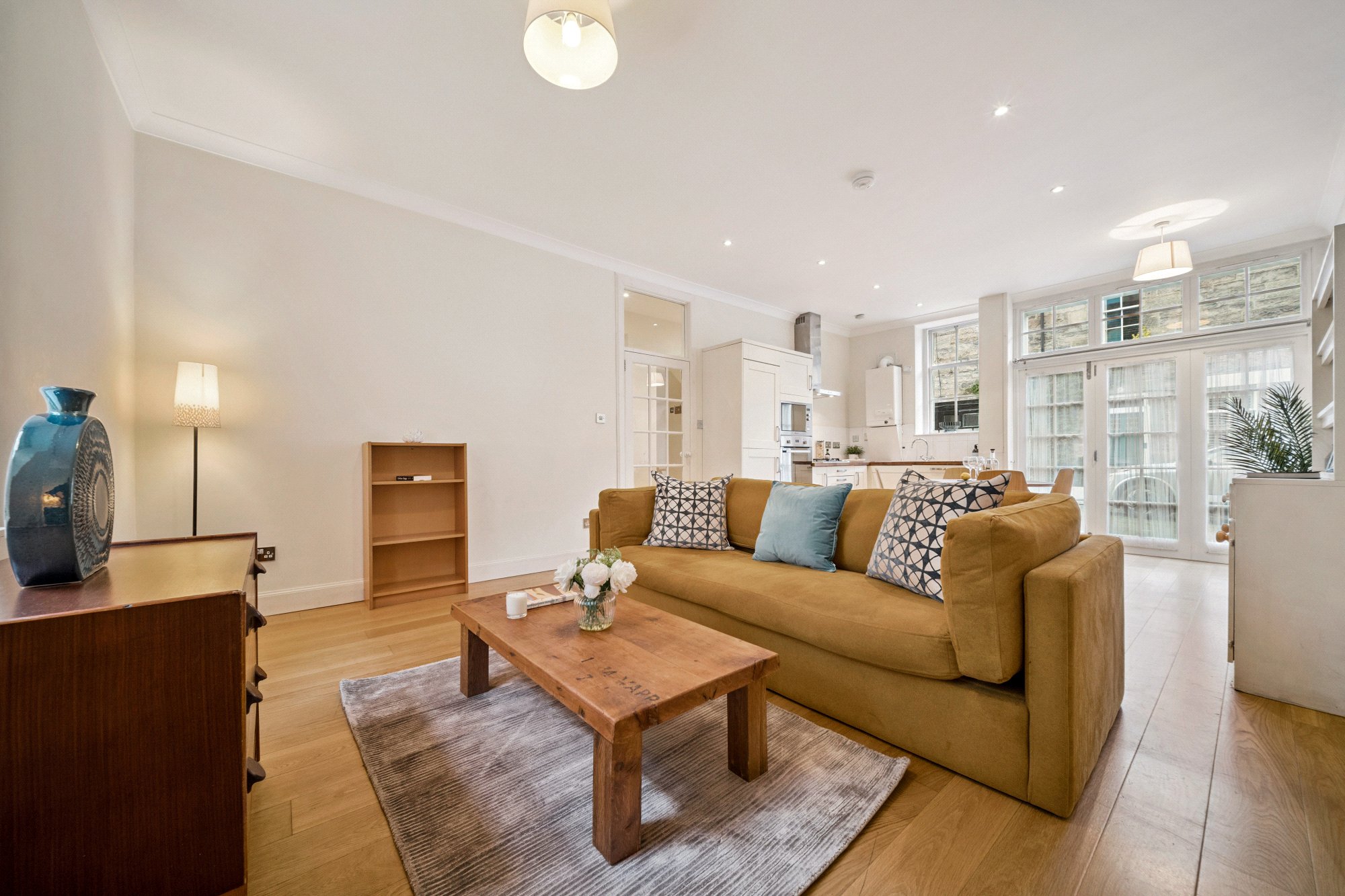 The standout feature of this home is the bright and generously proportioned open plan living/dining/kitchen space. This sociable area is ideal for modern living and entertaining, with ample room for both lounge and dining furniture and bi-fold French style doors that open out into the mews. The kitchen is fitted with a range of base and wall-mounted units, complemented by integrated appliances and worktop space.