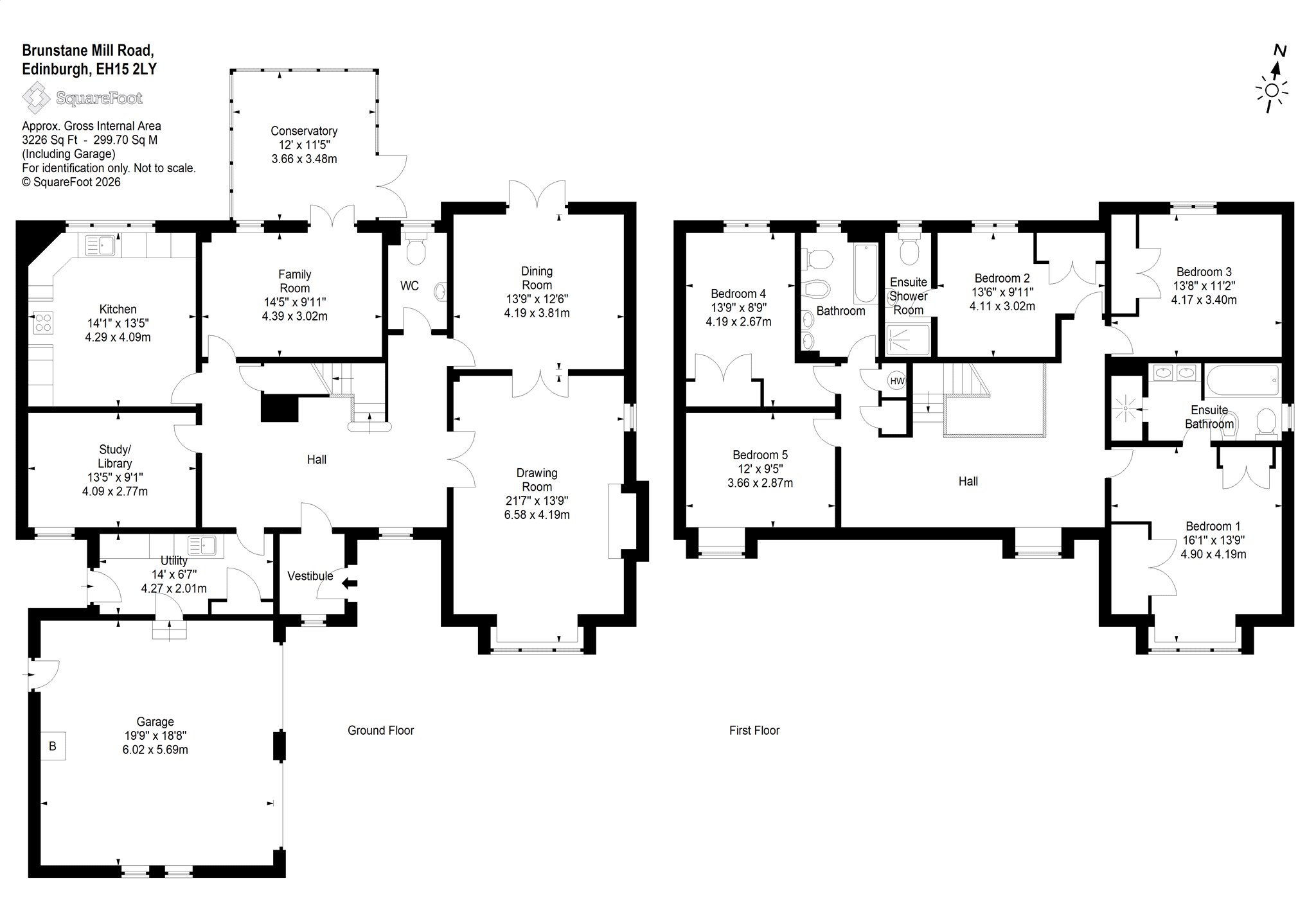Principal Bedroom with Ensuite Bathroom, Bedroom Two with Ensuite Shower Room, Bedroom Three, Bedroom Four, Bedroom Five, Family Bathroom.