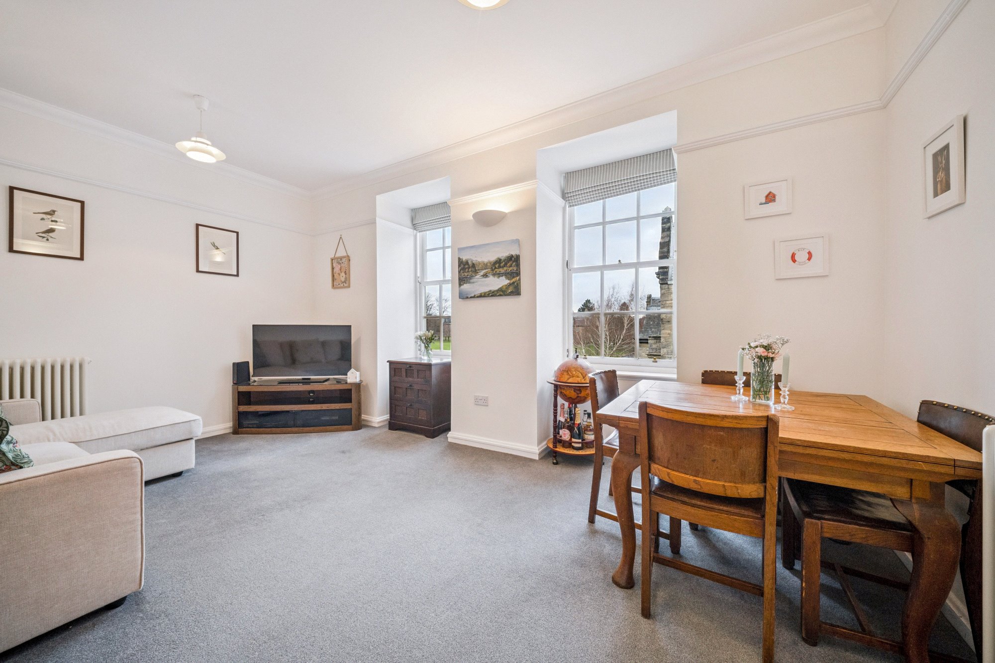 Set within a beautifully green and peaceful Victorian college conversion, this superbly presented flat offers bright, well-proportioned accommodation in true move-in condition. The property forms part of a fully factored building with a secure entry system, ample residents’ parking- a rare and valuable feature so close to the city centre- and access to exceptional communal grounds, including tennis courts and secure bike storage.