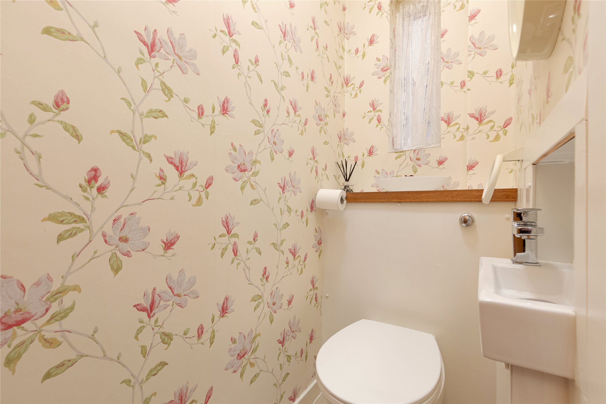 Internally, the accommodation is well laid out for modern family living. The ground floor includes a bright dualaspect living room with French doors opening directly to the garden, a wellproportioned formal dining room, and a generous kitchen/breakfast room with ample space for informal dining. A welcoming hall and a convenient groundfloor WC complete the downstairs accommodation.