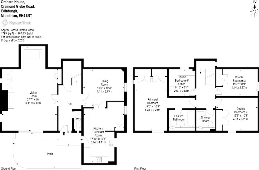 Upstairs, there are four comfortable bedrooms, including a spacious principal bedroom with ensuite bathroom. Three further double bedrooms provide excellent flexibility for family, guests or homeworking, and are served by an additional shower room.