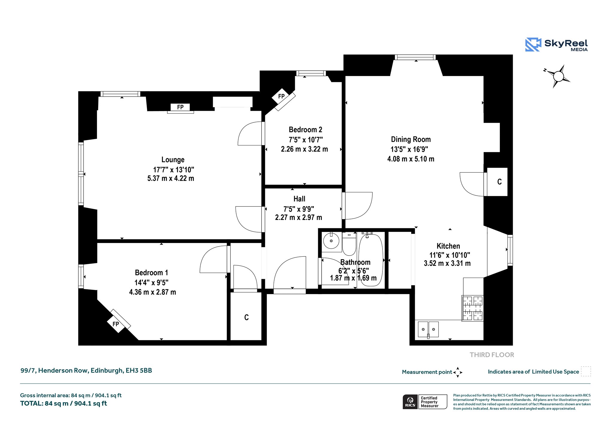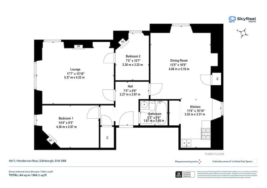 The accommodation comprises two well-proportioned bedrooms, a bright and functional kitchen, and a bathroom, all thoughtfully arranged around a central hall. The layout offers excellent flexibility for modern living, whether accommodating home working, guests, or additional storage needs. The sense of space throughout is immediately apparent, enhanced by the property’s position on the third floor, allowing for a bright and airy feel.