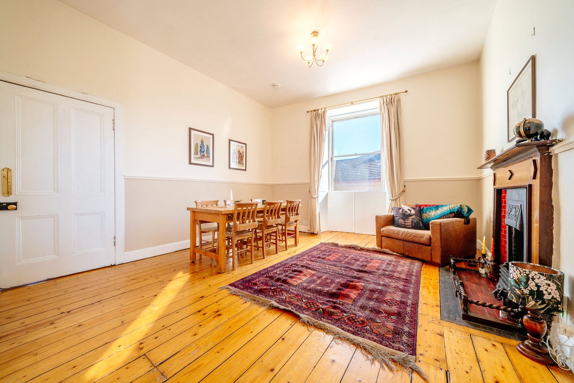 An exceptional opportunity to acquire a particularly spacious and beautifully proportioned third-floor flat, set within a highly desirable central location. This charming property effortlessly blends period character with generous living space, offering an ideal home for a variety of buyers. The impressive lounge is a true highlight, featuring elegant original cornicing that adds a sense of grandeur and timeless appeal, while its generous proportions provide ample space for both relaxing and entertaining. The property further benefits from a substantial dining room, perfect for hosting, where original floorboards add warmth and authenticity, a feature that continues through the hallway to create a cohesive and characterful flow throughout the home.