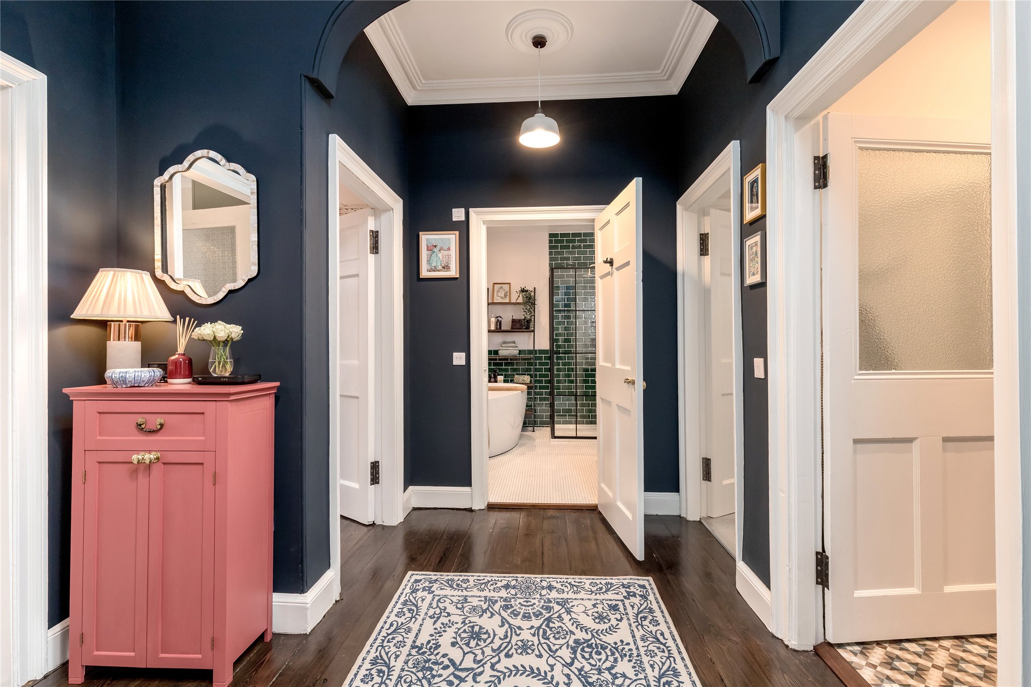 The property offers generously proportioned accommodation presented in true move-in condition, while retaining an array of elegant period features throughout. These include ornate cornicing, original fireplaces in the sitting room and bedrooms, sash-and-case windows with working shutters, original wood flooring, and a decorative cast-iron range stove in the kitchen. The property further benefits from gas central heating and new double-glazed windows throughout, as well as access to a well-maintained shared rear garden.