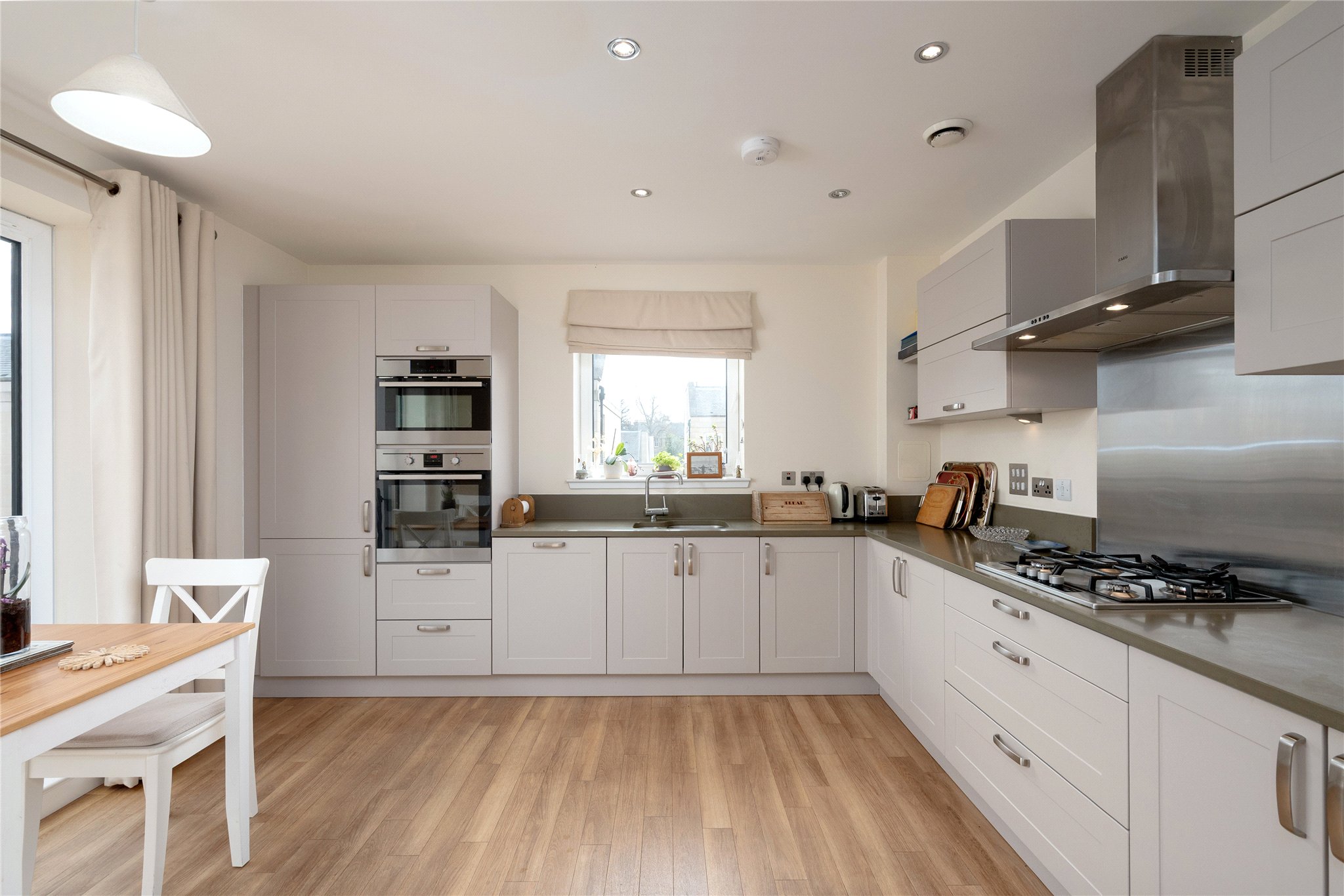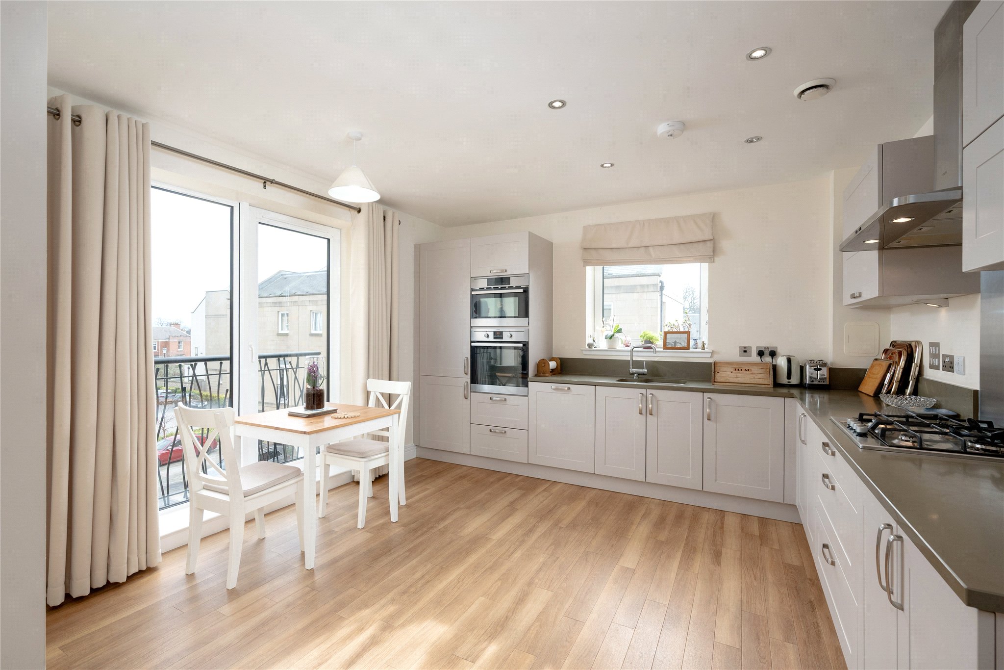 The spacious sitting and dining room forms the heart of the home, a beautifully bright room with large windows and direct access to the private balcony, creating a superb setting for both everyday living and relaxed entertaining. Adjacent is the sizeable kitchen and breakfast room, complete with extensive worktop space, ample storage and room for informal dining, while a separate utility room provides additional convenience and keeps laundry neatly out of sight.