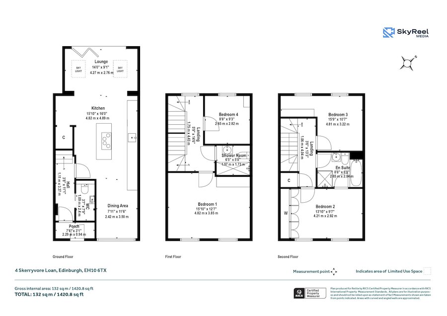 A welcoming hallway leads to a spacious open-plan lounge, kitchen, and dining area perfect for family living. There is also handy ground floor storage on this level and an immaculate WC. Upstairs, there are two double bedrooms with a shower room and on the second floor there is a large principal bedroom, with family bathroom which can be accessed as an ensuite or as a "Jack and Jill" bathroom to service the other double bedroom.