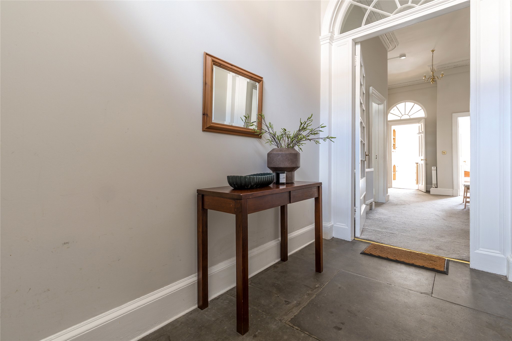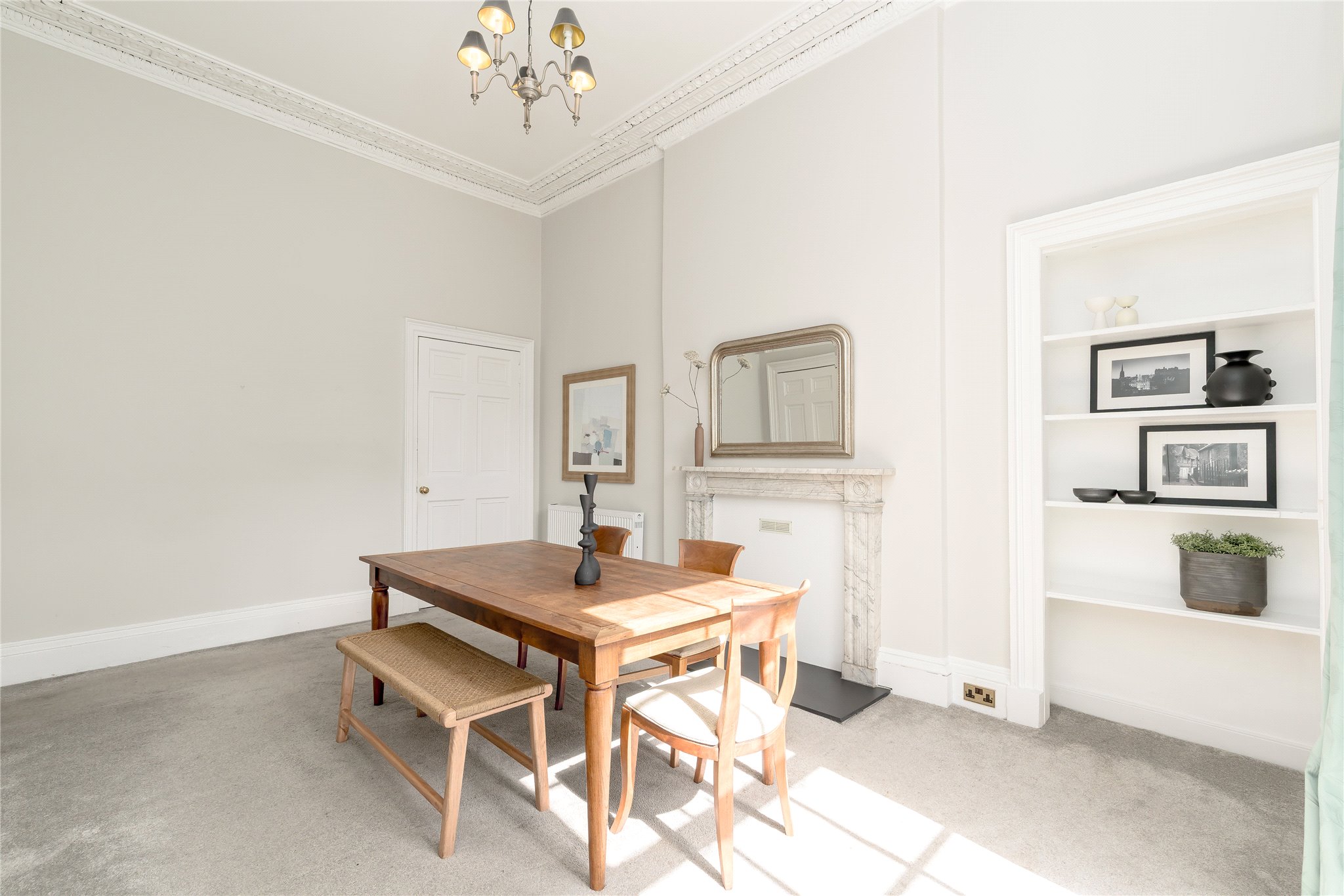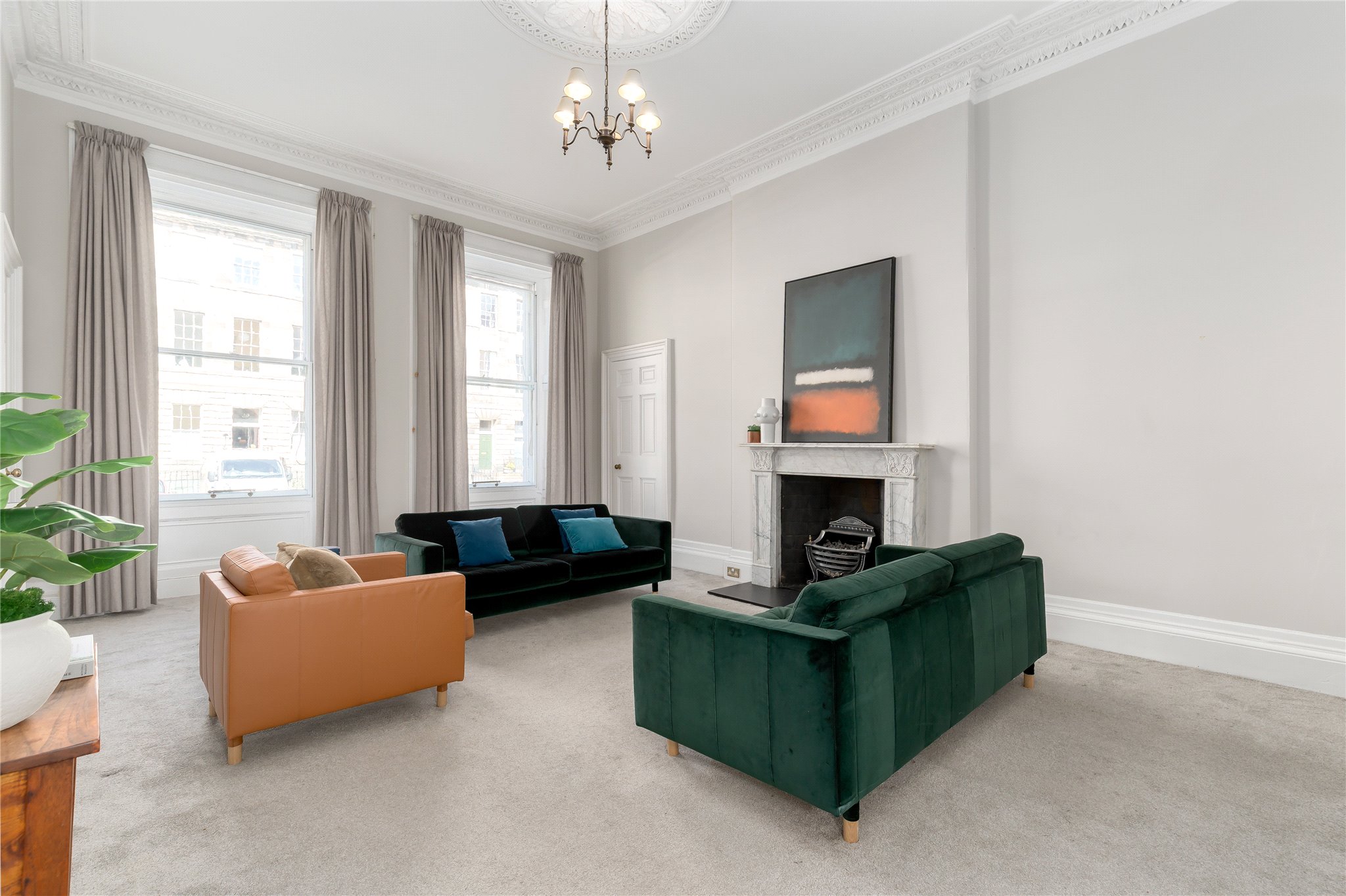 25 London Street is a superb main door, ground floor flat set within one of Edinburgh’s most sought-after central addresses, offering a wonderful blend of classic period charm and modern-day comfort. Presented in great condition throughout, the property retains an abundance of original features, including beautiful flagstone flooring, intricate cornicing, and striking original marble fireplaces, all of which enhance its character and appeal.