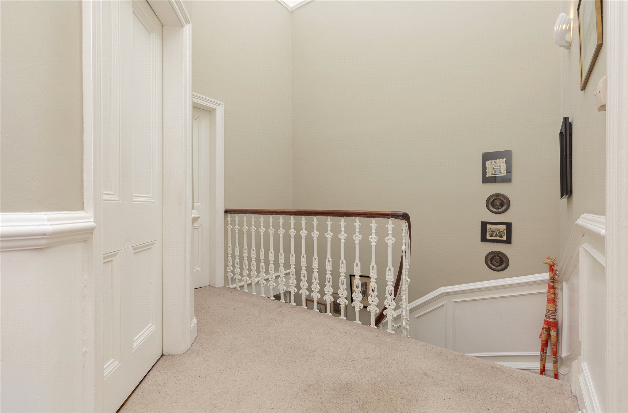 Set over two levels, the accommodation is presented in excellent condition throughout, seamlessly blending elegant period character with comfortable modern living. Fine original features include traditional sash and case windows enhanced by bay windows in the sitting room and main bedroom, intricate cornicing and panelling, decorative ceiling roses, original fireplaces, wall panelling, and a cupola above the landing that bathes the interior in natural light.
