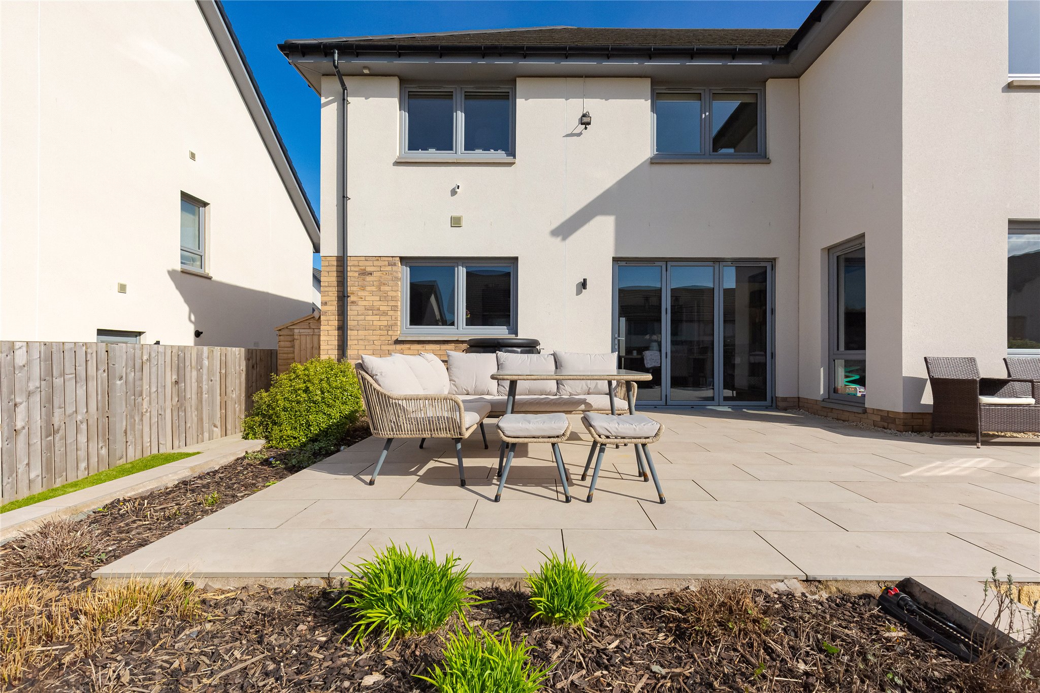 Externally, the property enjoys a private front garden and driveway leading to the integrated double garage. To the rear, a generous enclosed southwest facing garden is laid mainly to lawn and features a paved patio, ideal for al fresco dining and outdoor entertaining.