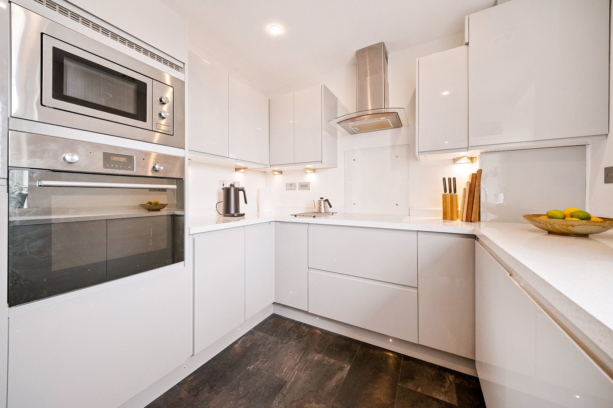 The heart of the home is a bright and generously proportioned lounge and dining room, which enjoys an abundance of natural light and provides an ideal space for both relaxing and entertaining. From here, there is direct access to a private balcony, perfectly positioned to take in beautiful views over the water, creating a wonderful setting to unwind. The separate kitchen is well laid out, offering ample storage and workspace.