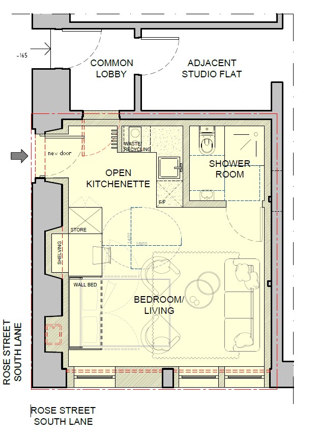- Full planning consent granted for conversion into a one bedroom studio flat.
