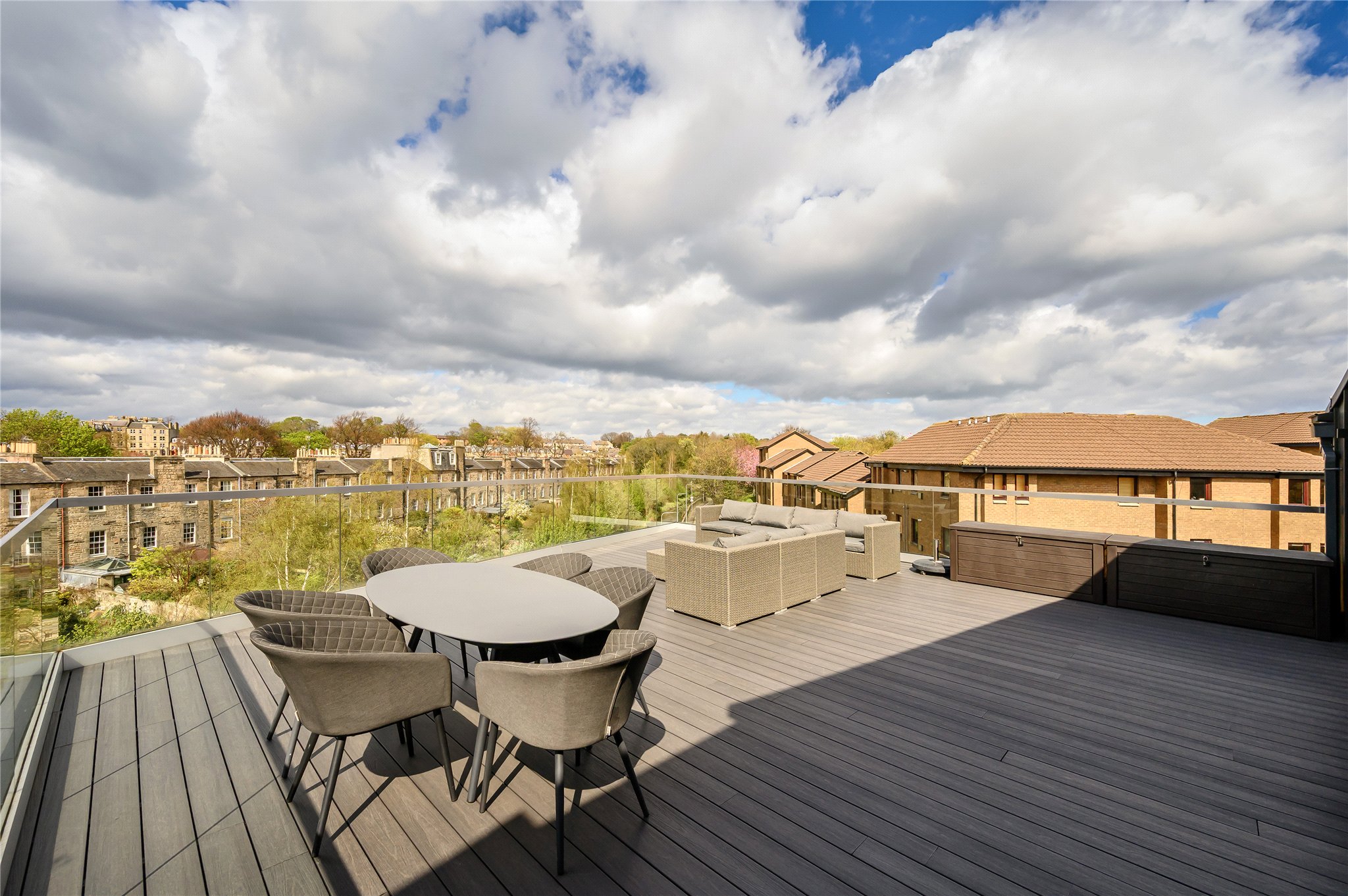 A true standout feature of the property is the expansive and rarely available private terrace, offering a wonderful extension of the living space. This exceptional outdoor area provides ample room for dining, relaxing and entertaining, while enjoying open aspects and views over the Water of Leith, creating a peaceful and scenic setting in the heart of the city.