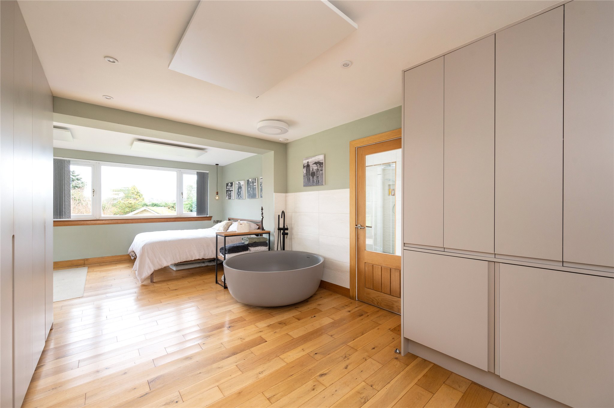 In close proximity to the beach and only a short commute to Edinburgh, the house, extending to 2943 square feet, boasts high-tech, elegantly designed Ashley Ann Interiors incorporating a well-designed self-contained principal bedroom/annex.