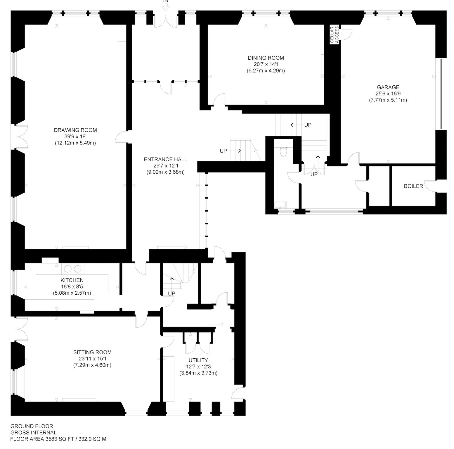 Ground Floor - Entrance Porch and Reception Hall, Drawing Room, Dining Room, Sitting Room, Kitchen with Aga, Utility Room, Cloakroom.