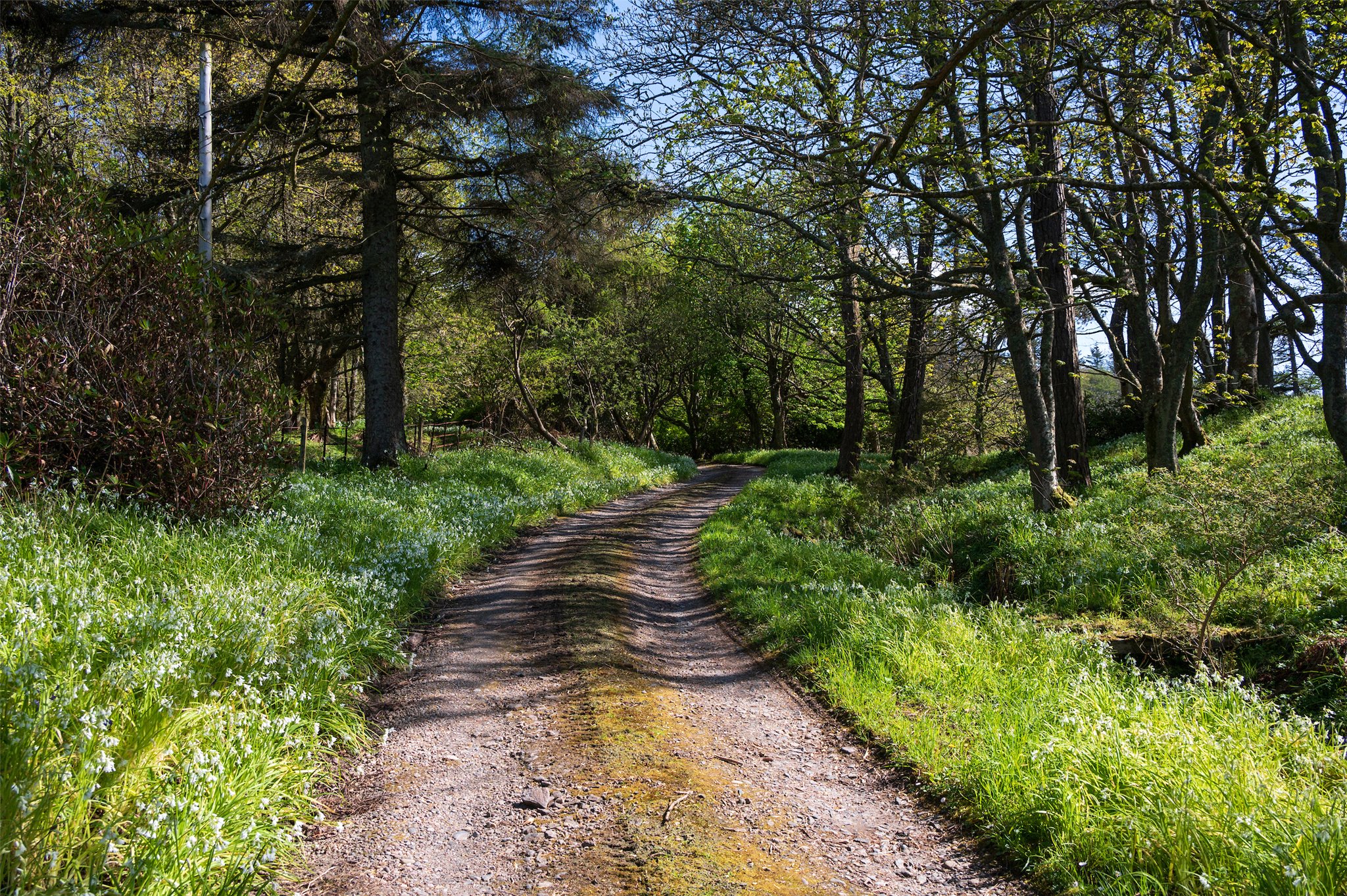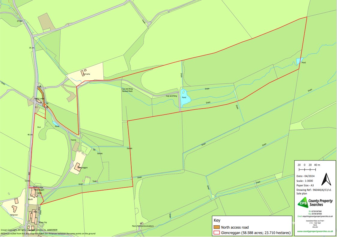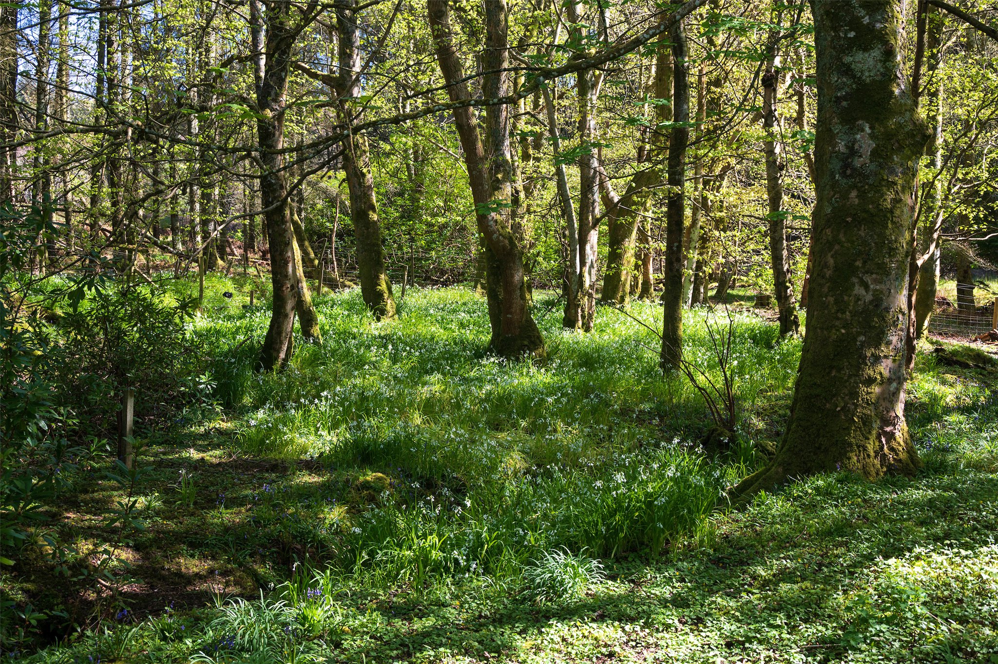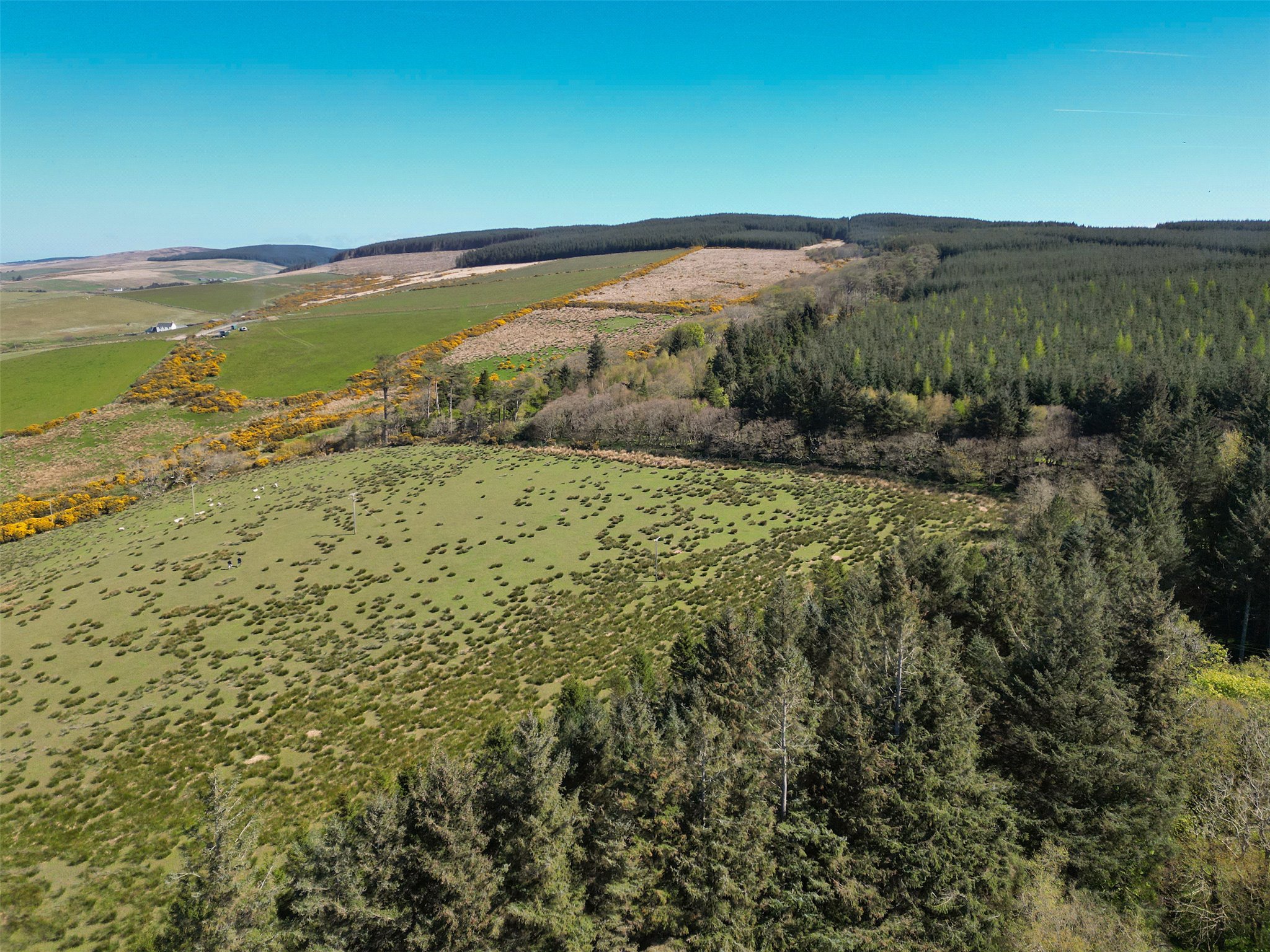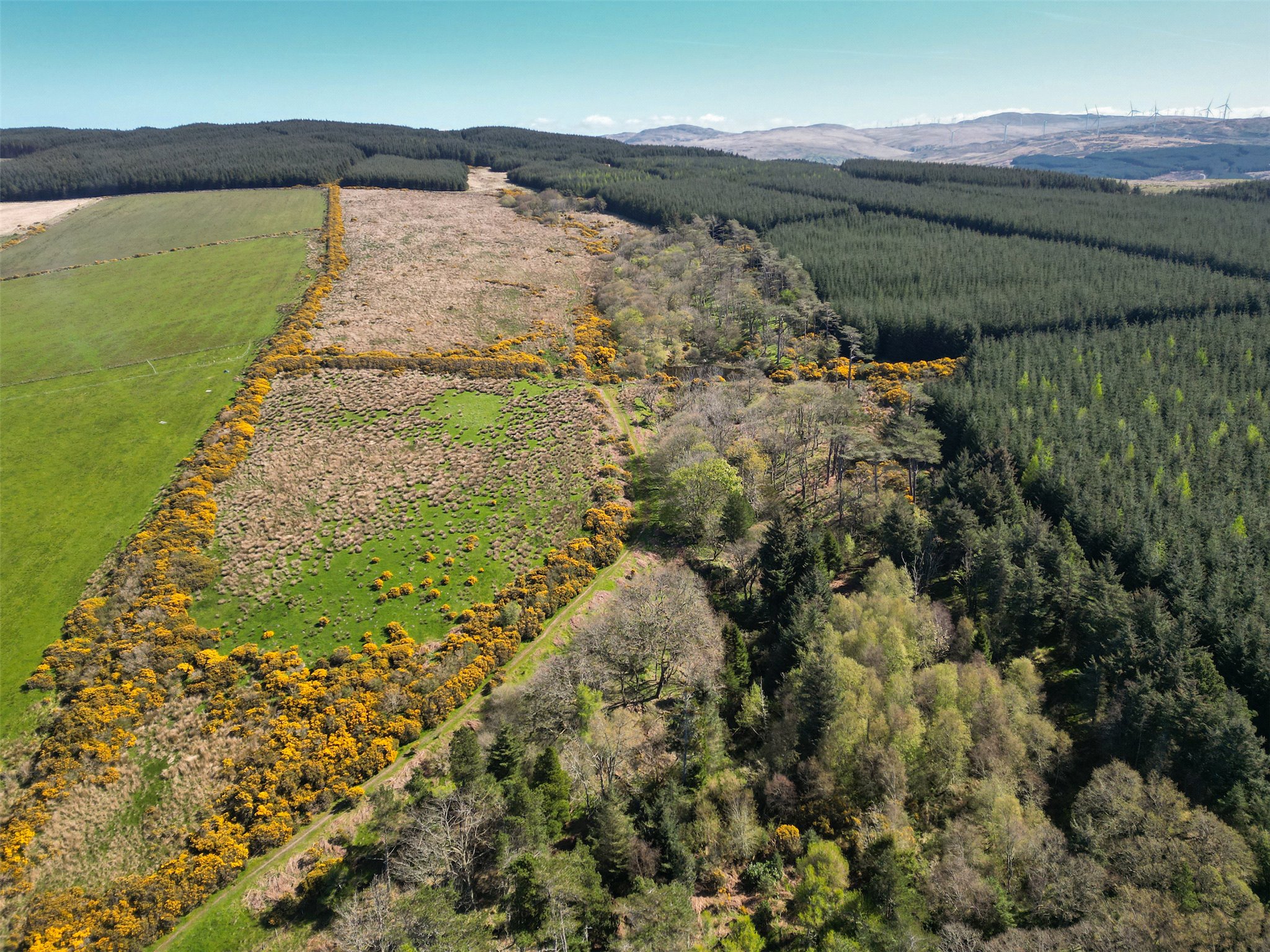 About 30 acres of grazings. Lochan. About 23 acres of woodlands. Former stone outbuildings.