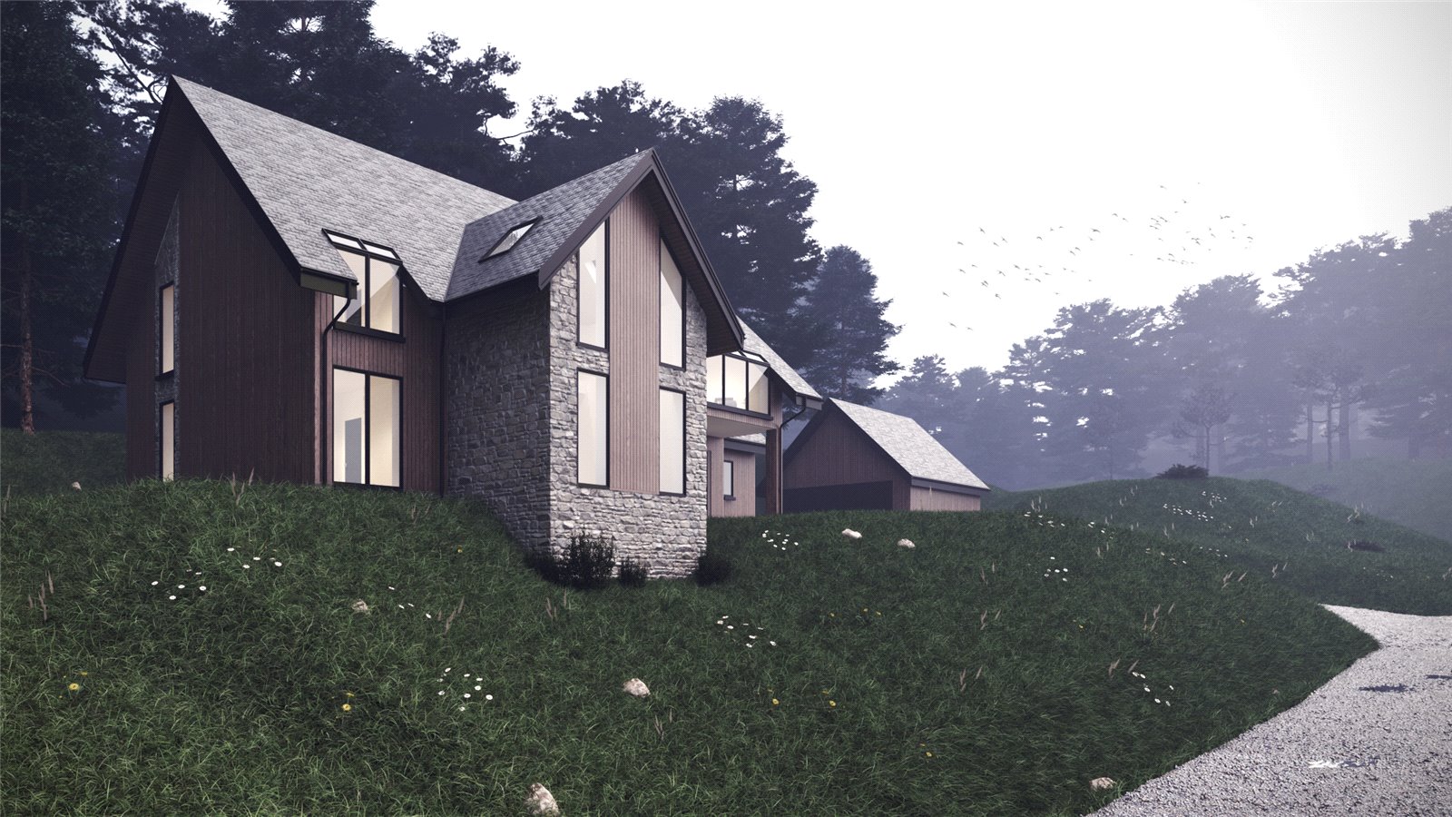 The house has been designed with deference to the elevation and gradient of the plot, which is accessed off the A822,via a shared private driveway, and enjoys charming views through the surrounding woodland canopy. The proposed one-and-a-half storey home has a covered verandah, as well as a generous fenestration, featuring concertina doors and tall windows. The Perth & Kinross Council’s Planning Reference Number for the planned home is 21/00316/FLL.