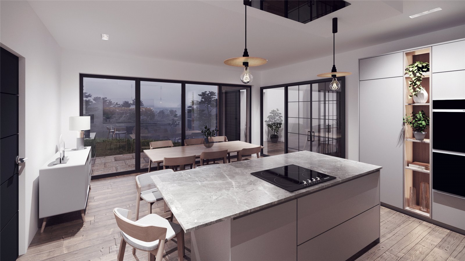 Exterior: Plot extending to approximately 0.33 acres. Driveway and detached double garage with electric door and power. Garden to be landscaped with split level areas, accented by external lighting and paths, an elevated alfresco dining area or space for hot tub to the rear of the house, and timber fencing to property boundaries.