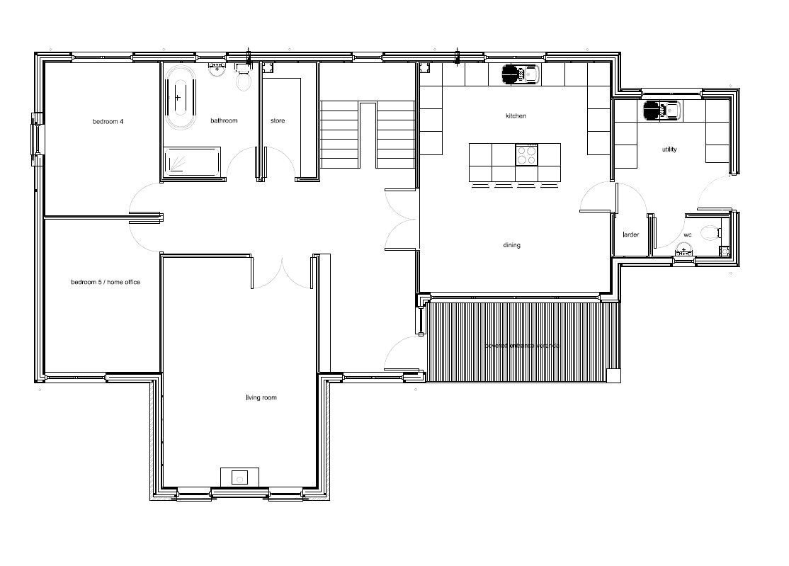 Ground Floor: Hall, Sitting Room, Kitchen/Dining Room, Double Bedroom 4, Double Bedroom 5/Home Office, Bathroom, Utility Room with adjoining Pantry and Cloakroom/WC, and Store/Plant Room.