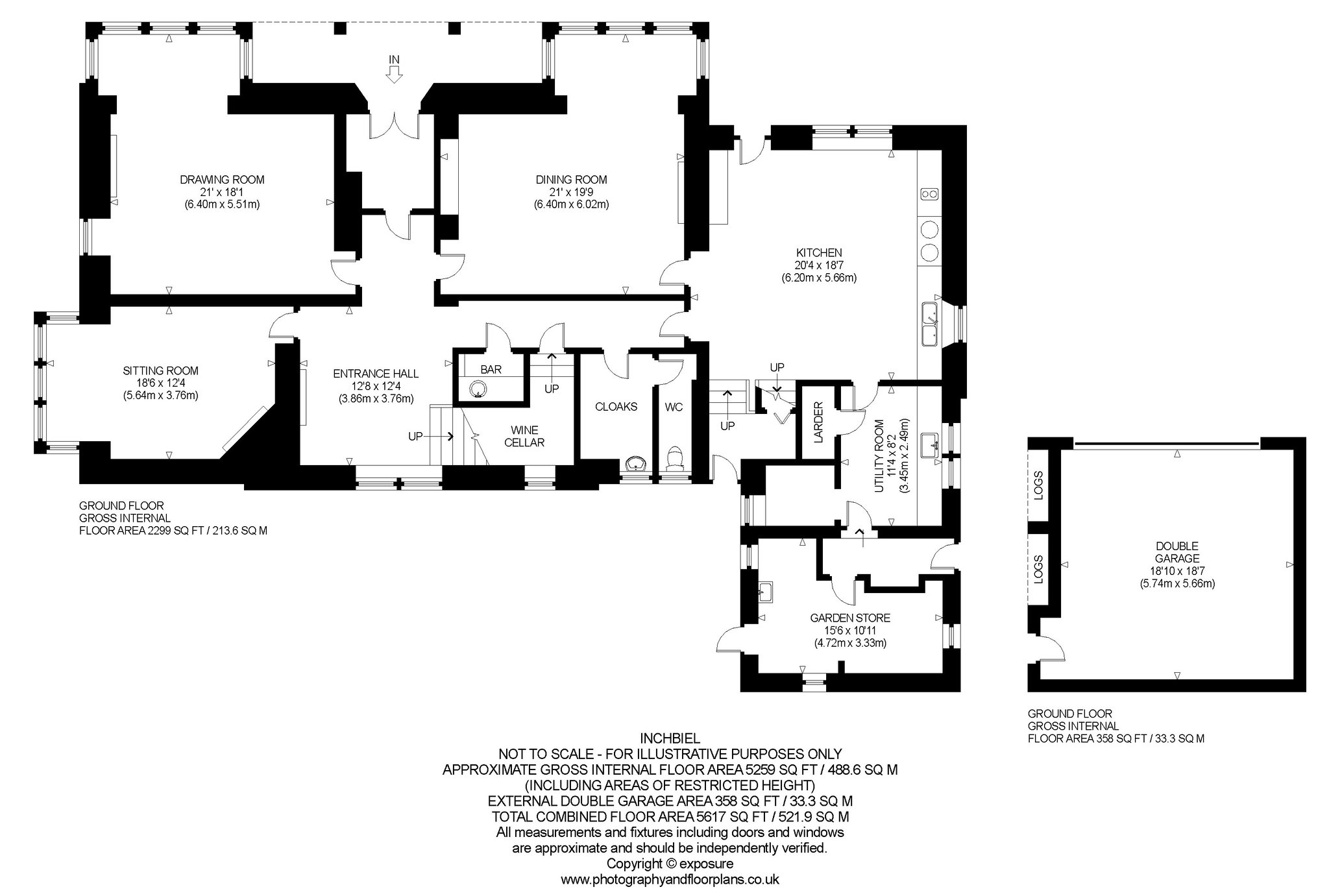 Ground Floor: Entrance Vestibule, Reception Hall, Drawing Room, Dining Room, Kitchen-Breakfast Room, Sitting Room, Wine Cellar, Cloakroom with Separate WC, Utility Room, Larder and Garden Store.