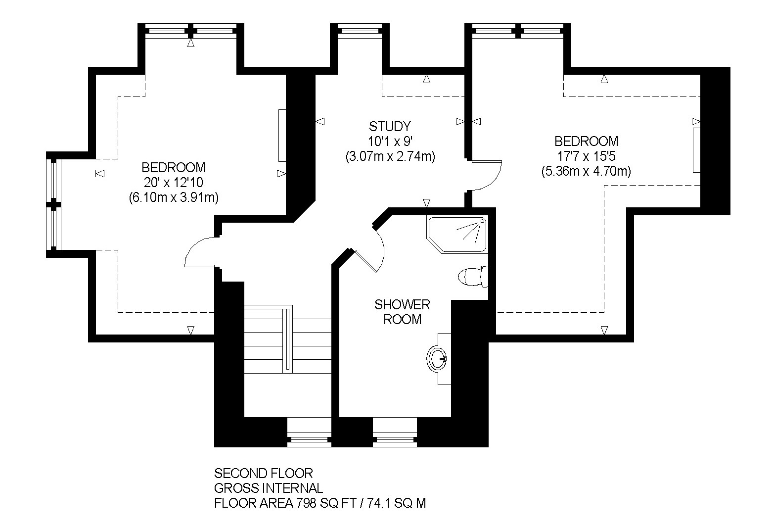 Second Floor: Landing/Study, Two Double Bedrooms and a Shower Room.