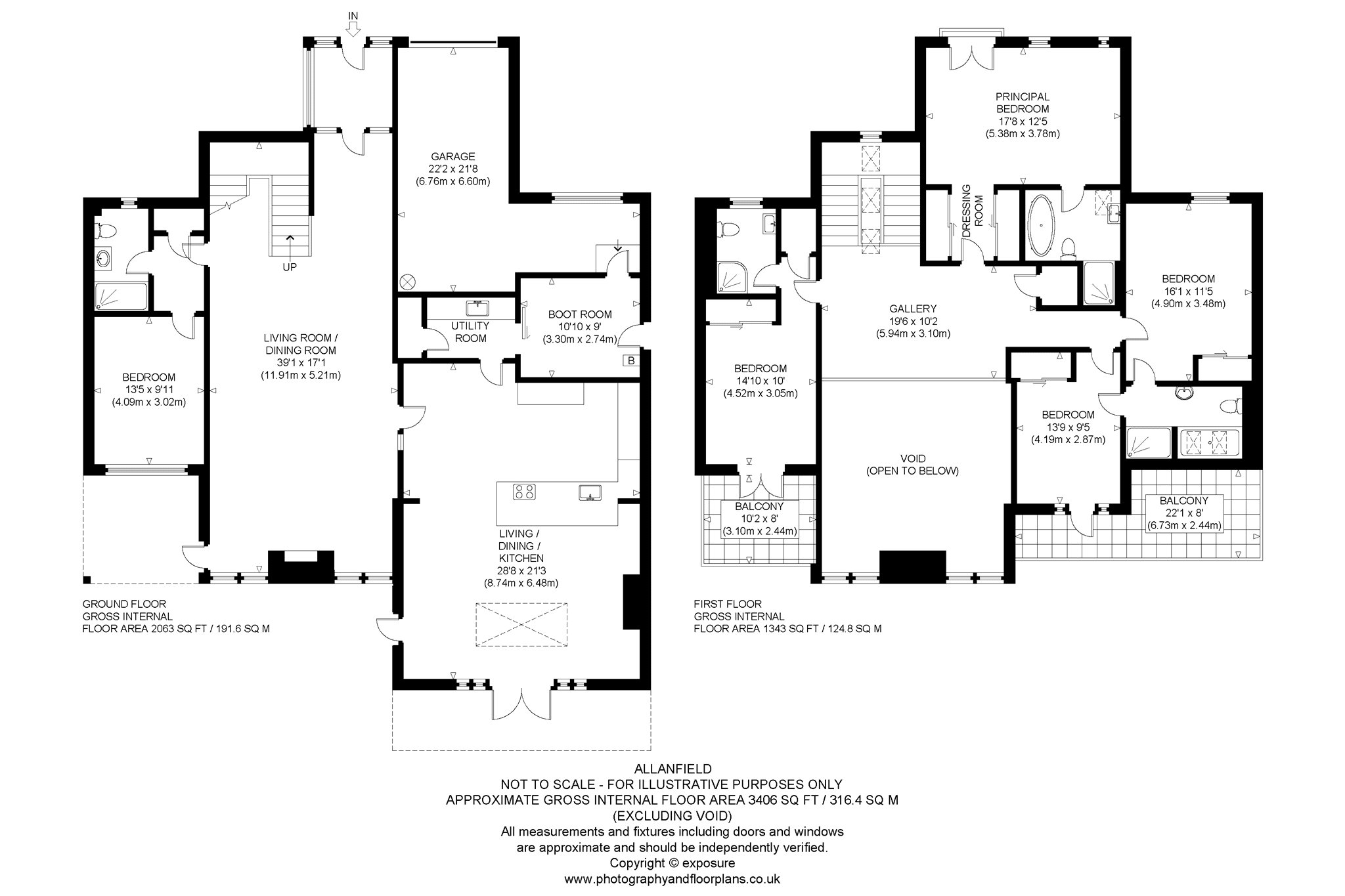 Ground Floor: Entrance Vestibule, Reception Hall and Galleried Sitting Room, Kitchen and Dining/Family Room, Bedroom 5/ Study, Shower Room, Utility Room, and Boot Room.