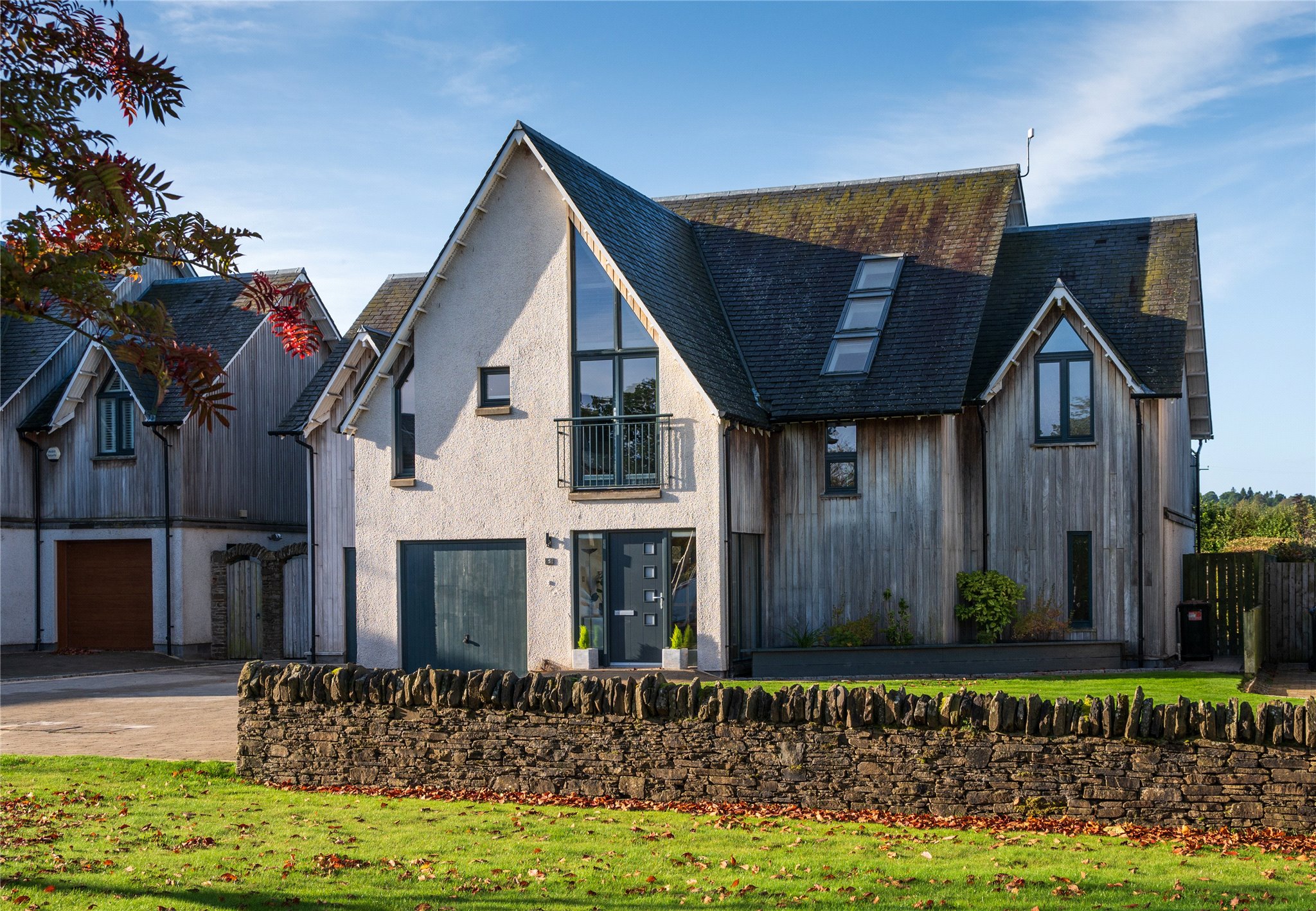 Exterior: 5 Allanfield is set within an immaculately presented plot, which frames the house attractively. To the front, the neat curtilage features a lawn area with a traditional dry-stone wall and a spacious, paved driveway, providing off-street car parking for several vehicles and access to the integral garage.