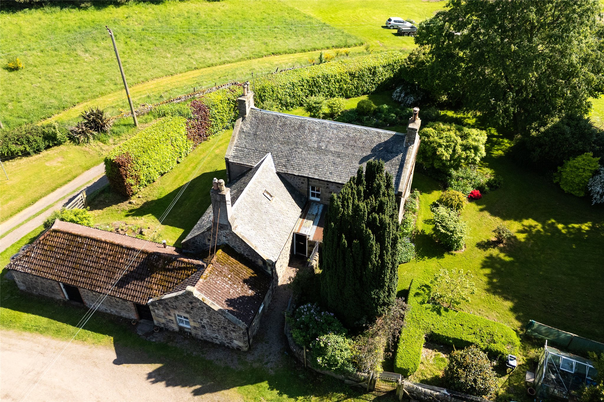 There are a variety of outbuildings now in need of renovation including an extensive stone steading, but offering much potential.
