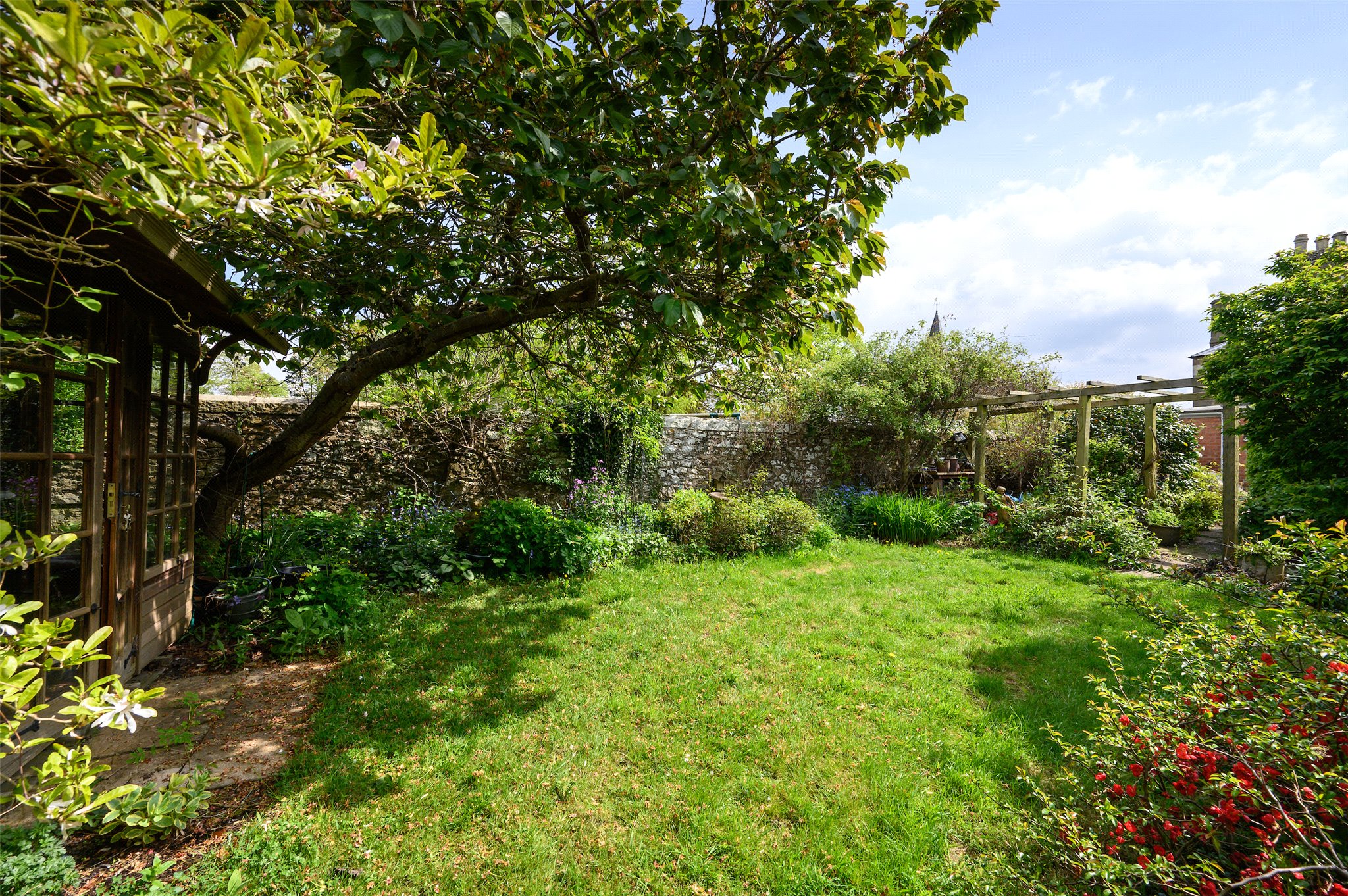 Garden: Sunny Mature Garden to the rear with Patio and Lawn.