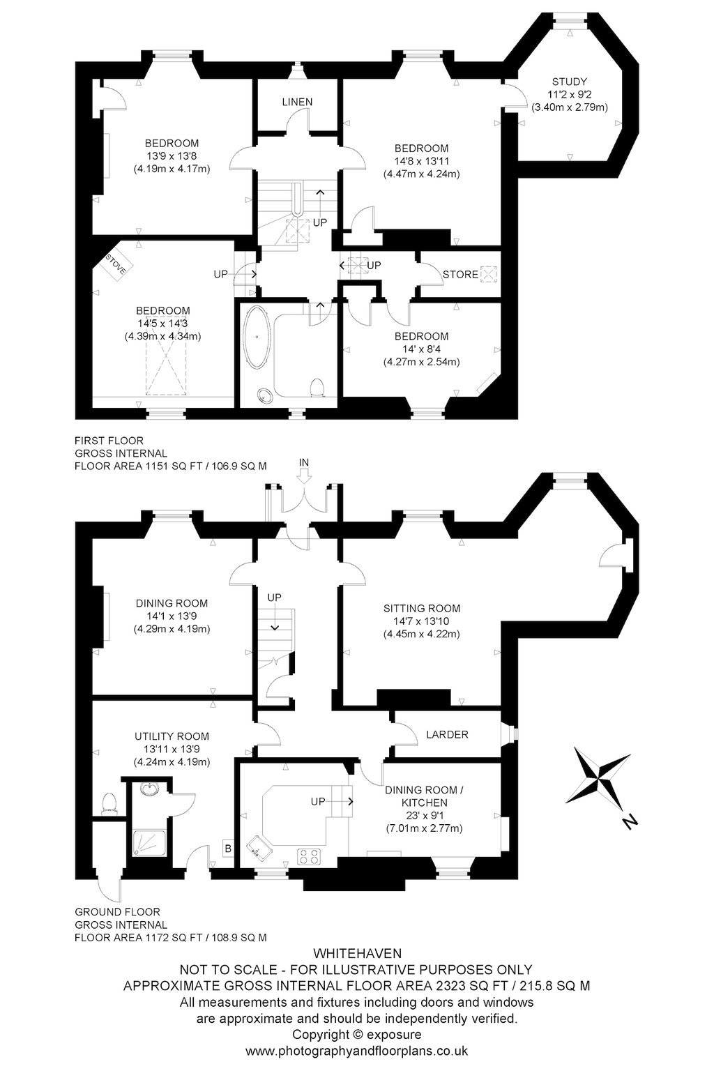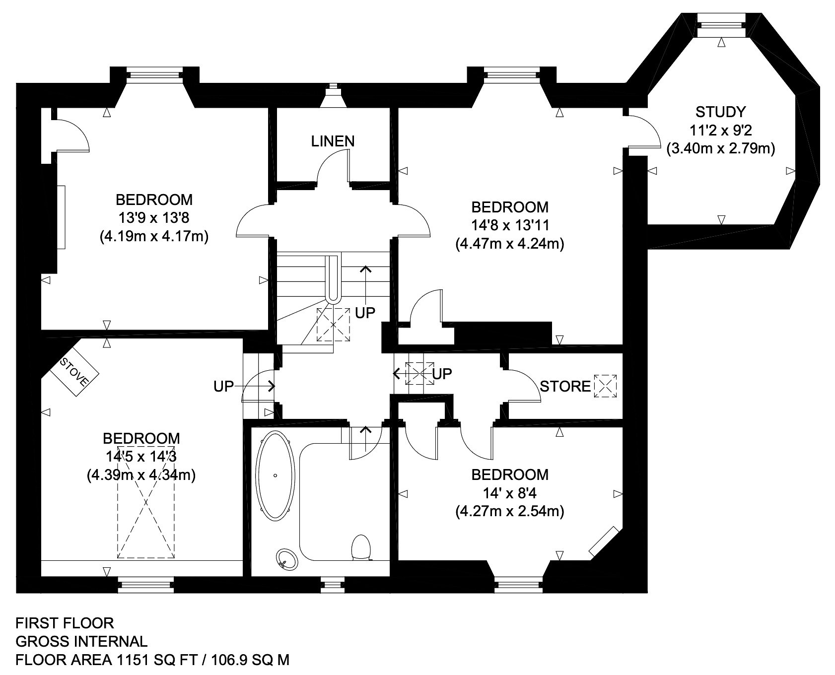 First Floor: Principal Bedroom with Dressing Room, Three further double Bedrooms and a Family Bathroom.