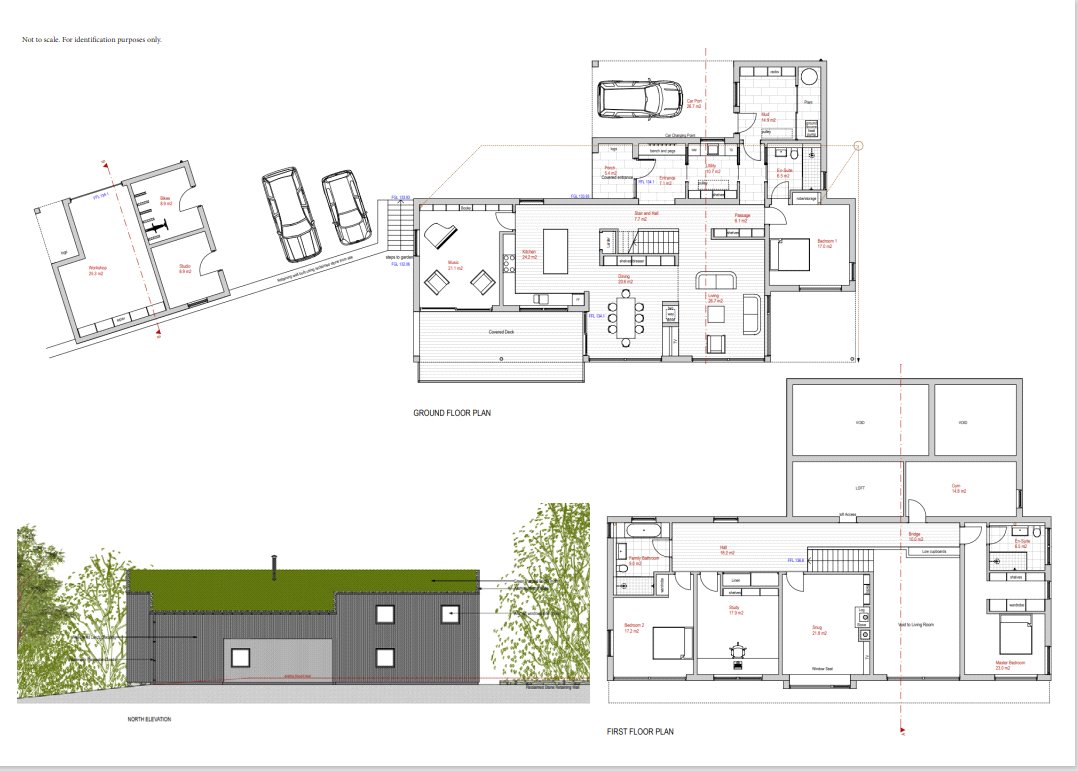 Ground Floor: Porch, Entrance Hall, open plan full height Kitchen/ Dining/ Living room , Study/Music Room, Bedroom with en suite Bathroom, Utility Room, Boot Room, Plant Room.