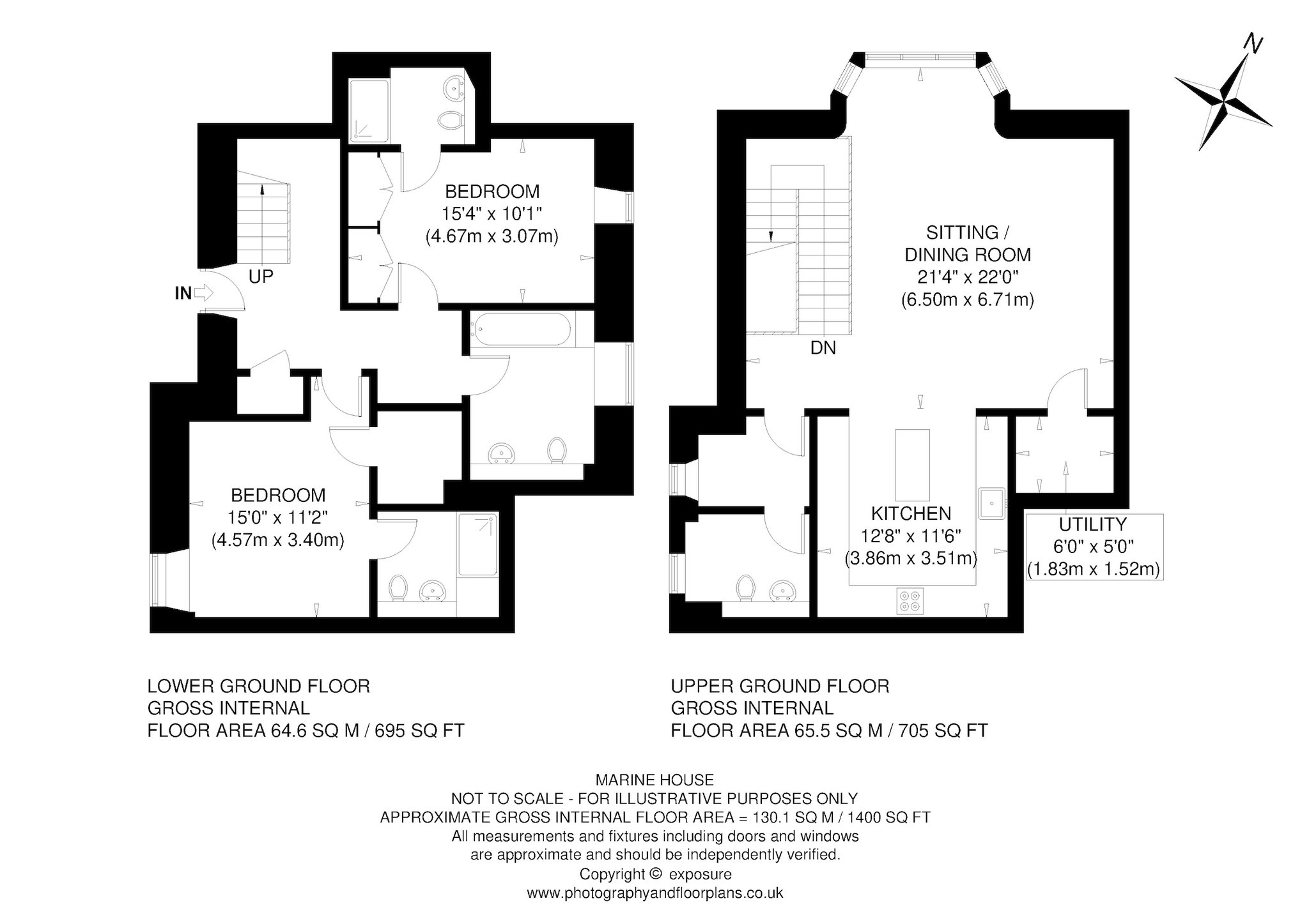 Lower Ground Floor: Entrance Hall, Principal Bedroom with Walk In Wardrobe and En Suite Shower Room, Double Bedroom with En Suite Shower Room, Bathroom and Hall Cupboard.