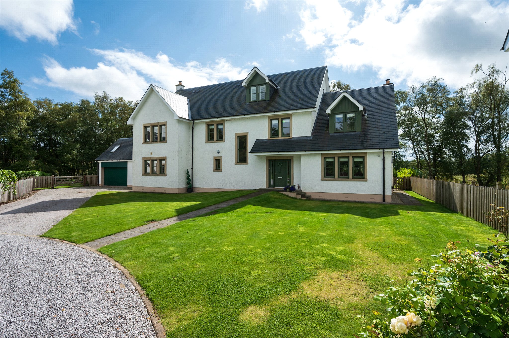 An impressive, contemporary 5 bedroom country house, measuring 4,401 sq ft, situated in the delightful and highly sought-after rural conservation village of West Linton and within easy access to Edinburgh and the city bypass.