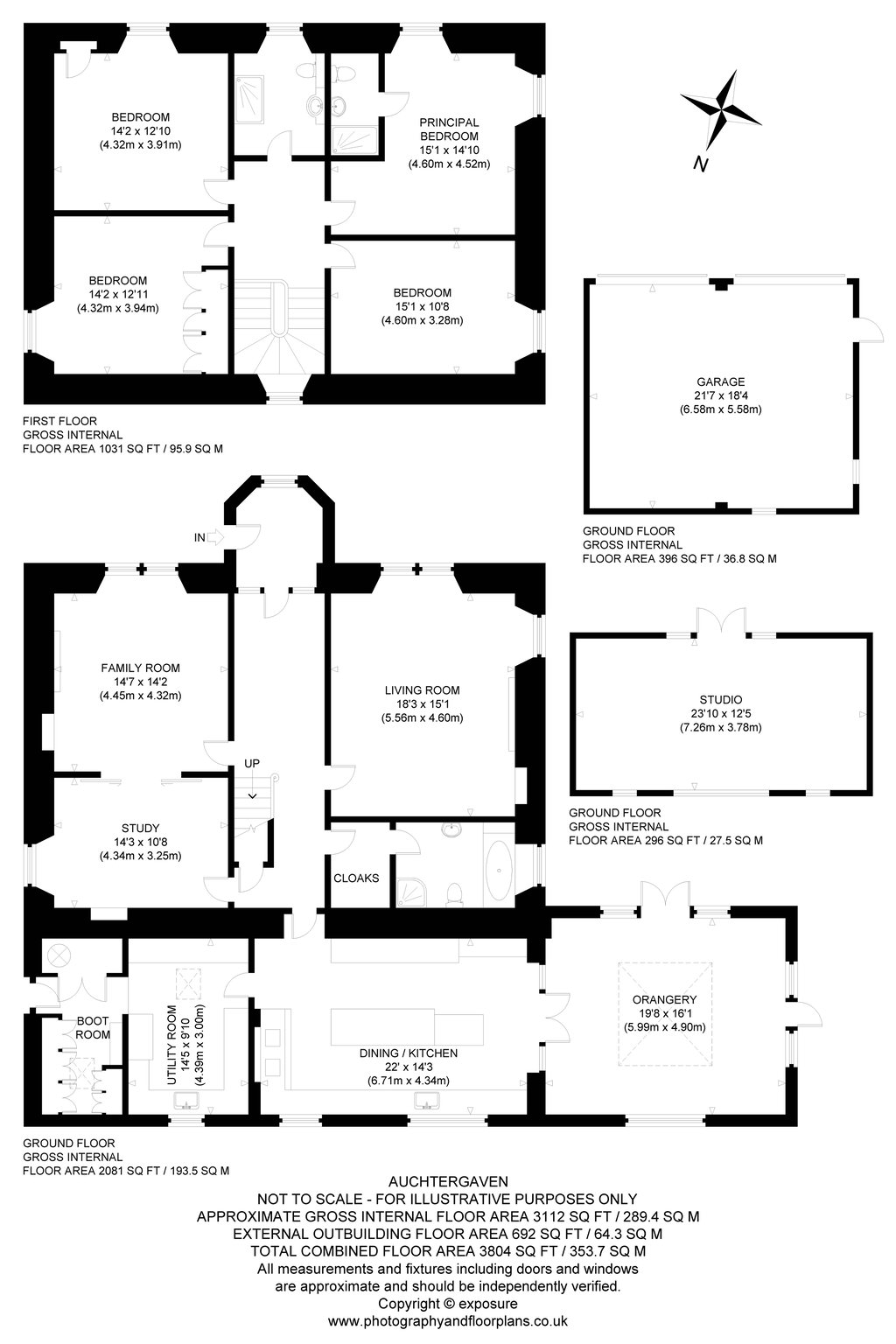Ground Floor: Entrance Porch, Entrance Hall, Living Room, Family Room, Study, Dining Kitchen, Orangery, Utility Room, Boot Room, Cloakroom, Family Bathroom.
