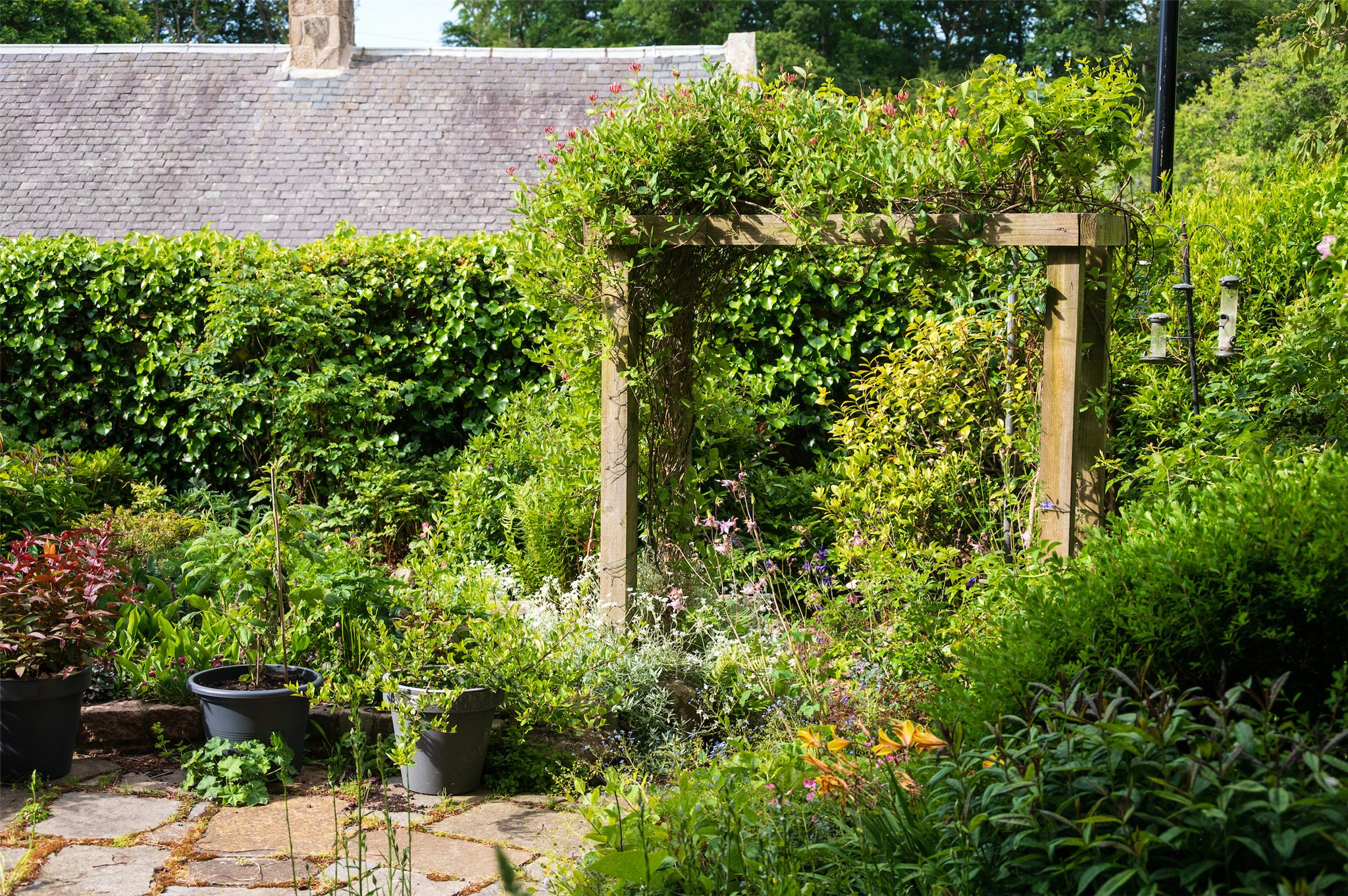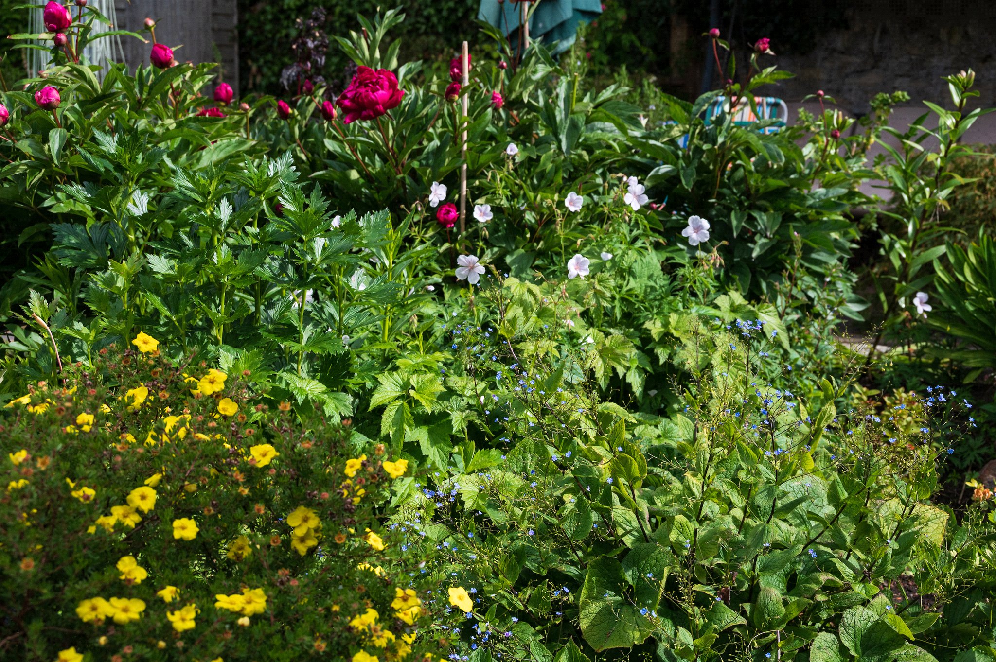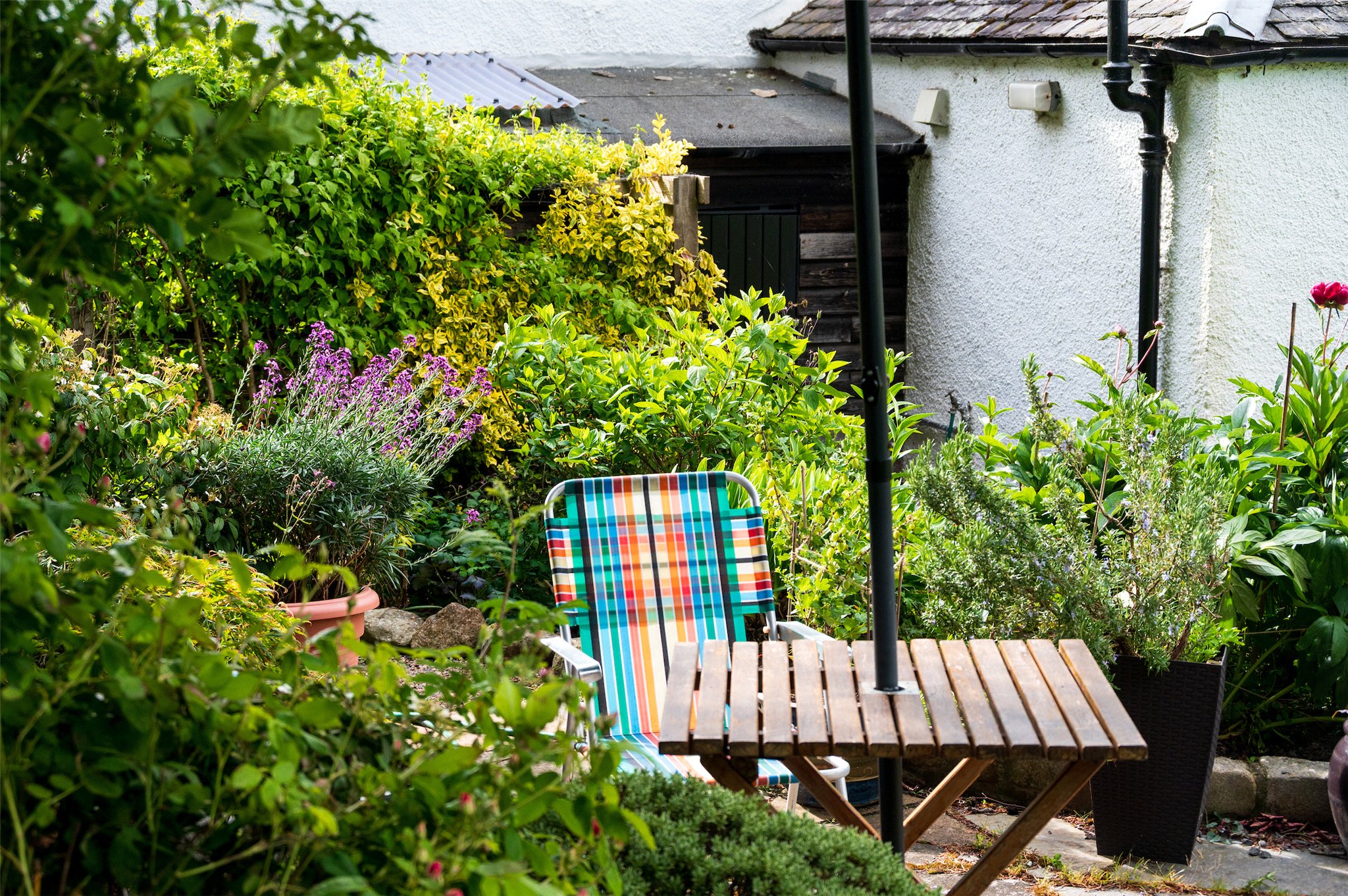 Exterior: Private rear garden, with colourful herbaceous borders and a patio area.