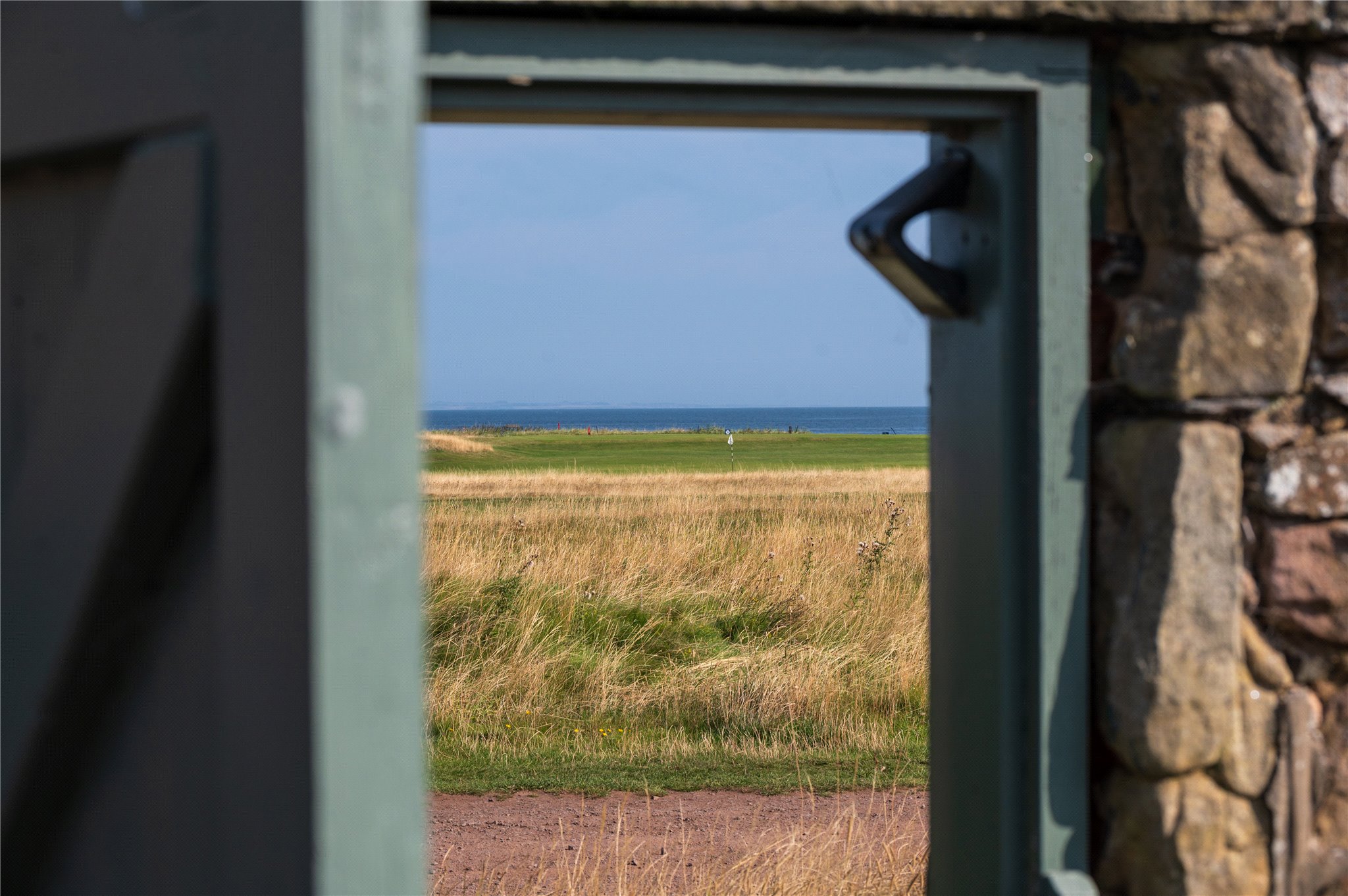 Garden door to West Links golf course and path to beach.