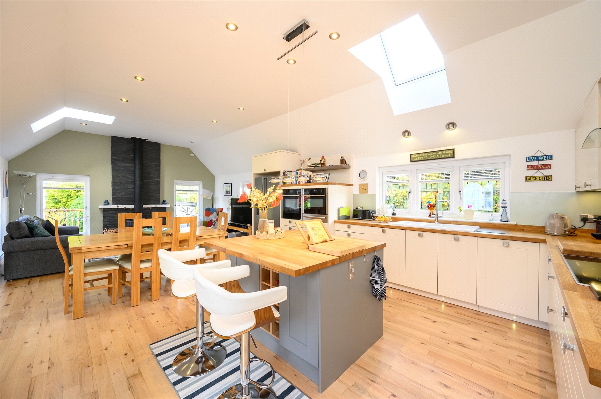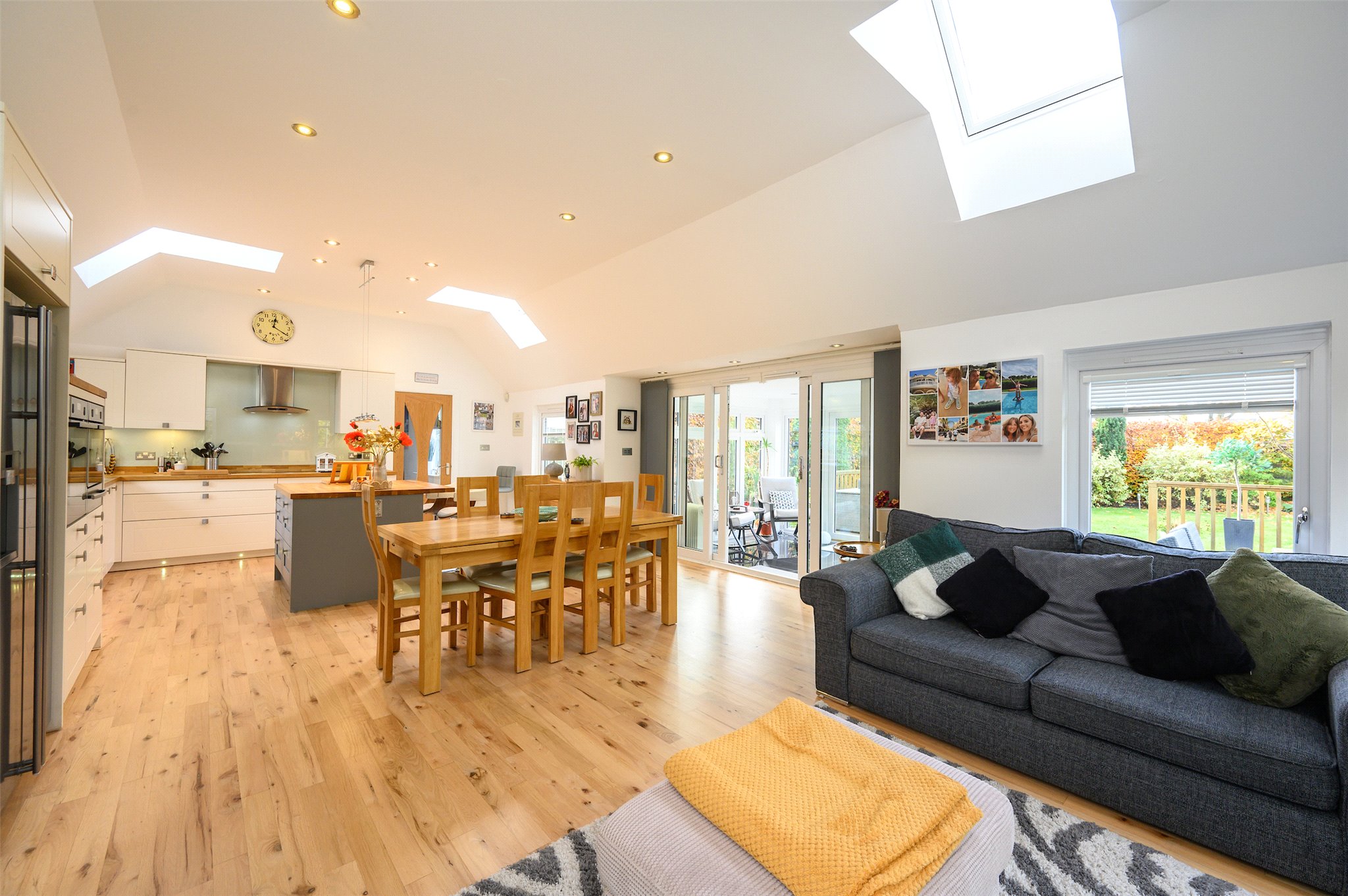 Double Bedroom 5 with en-suite Shower Room, Dining Kitchen open plan to Living area, Sunroom, Pantry, Utility Room, Cloakroom, WC.