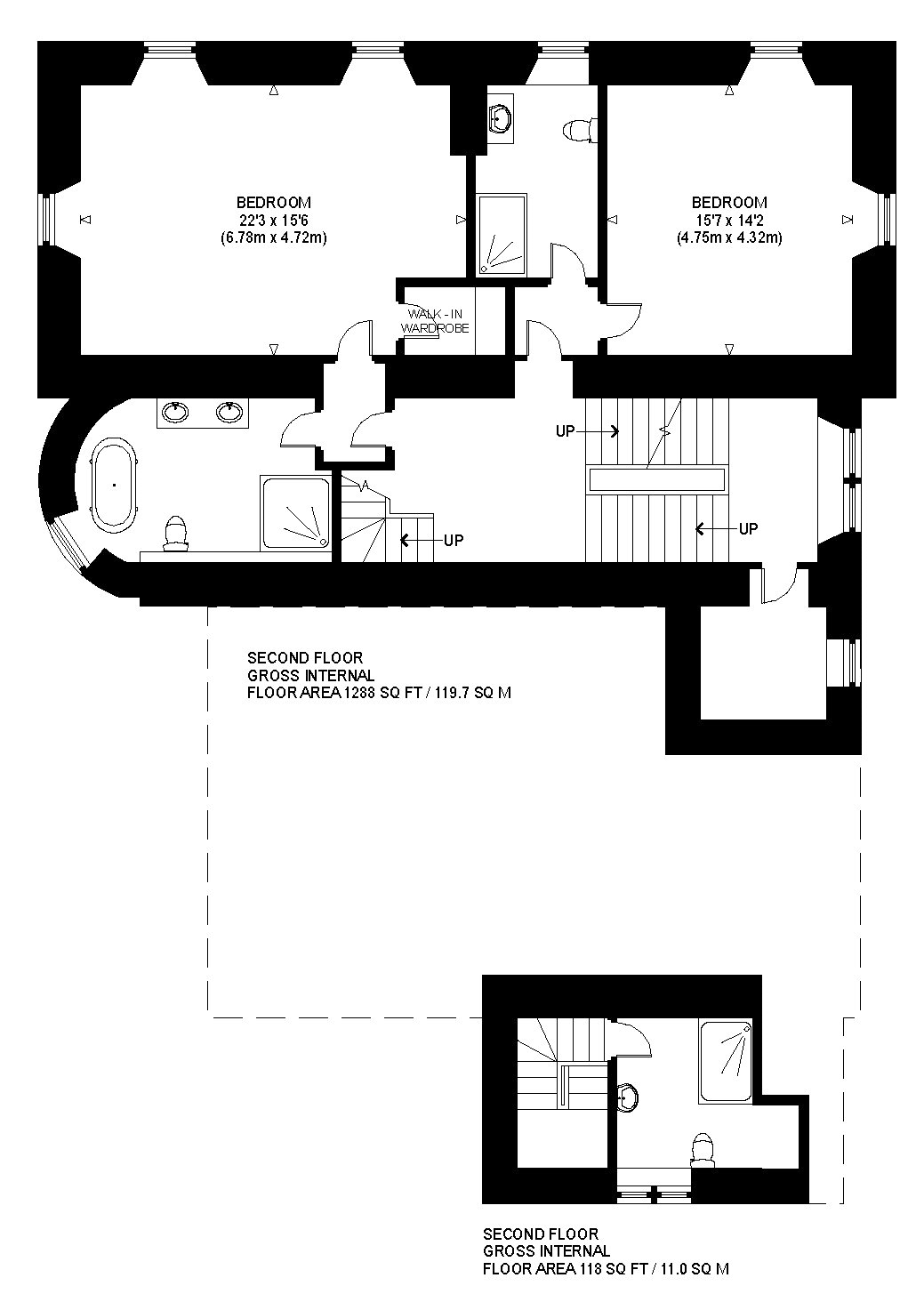 Second Floor: Landing, Double Bedroom with en suite Bathroom and walk-in wardrobe, and Double Bedroom with en suite Shower Room. Shower Room via secondary staircase.