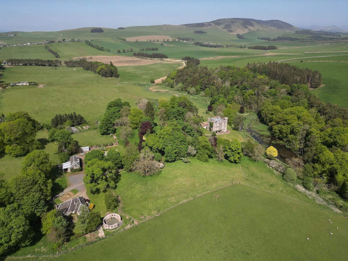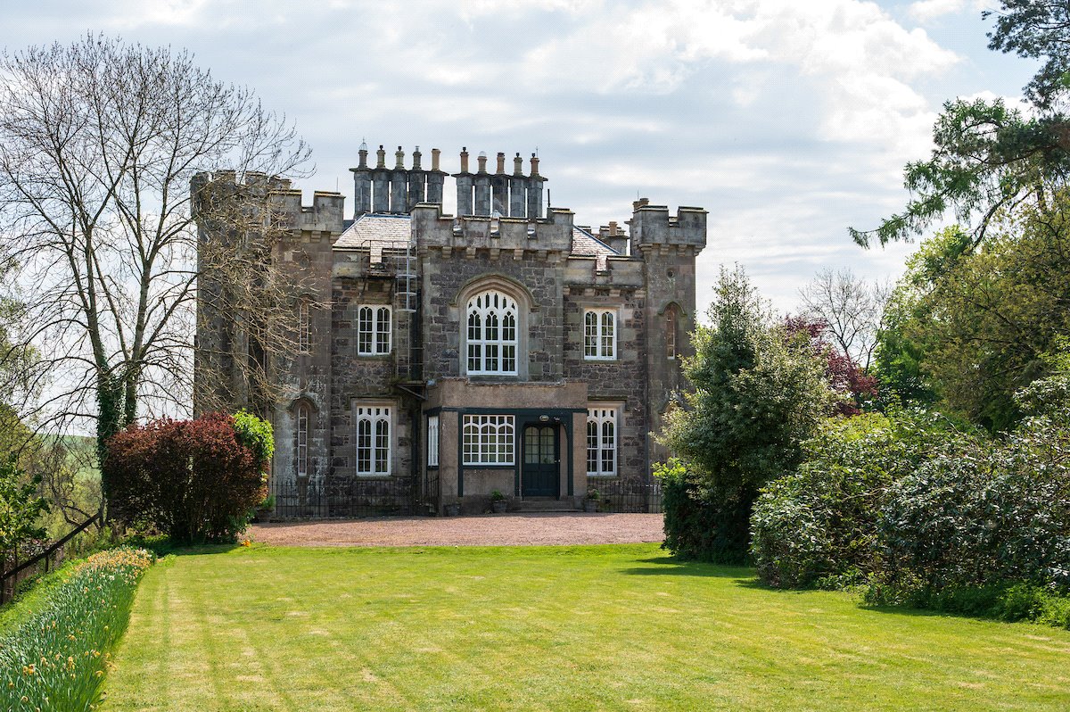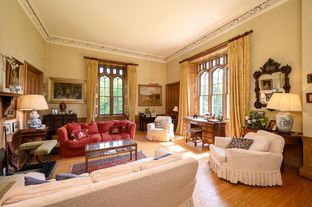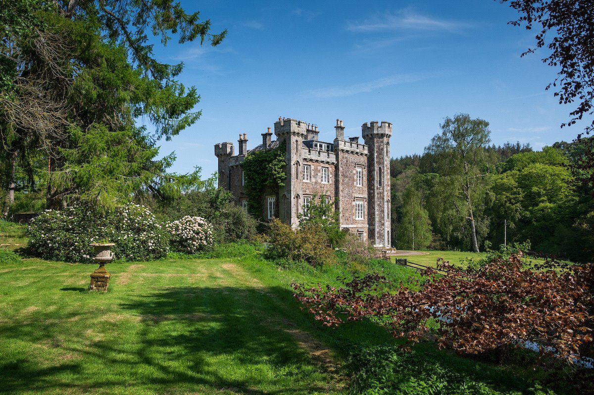 An impressive 19th century B listed 7-bedroom country house with exquisite period features, set in 27 acres of gardens, grounds and woodland to include a 3-bedroom cottage, former coach house, tower house ruin and an ornamental loch.