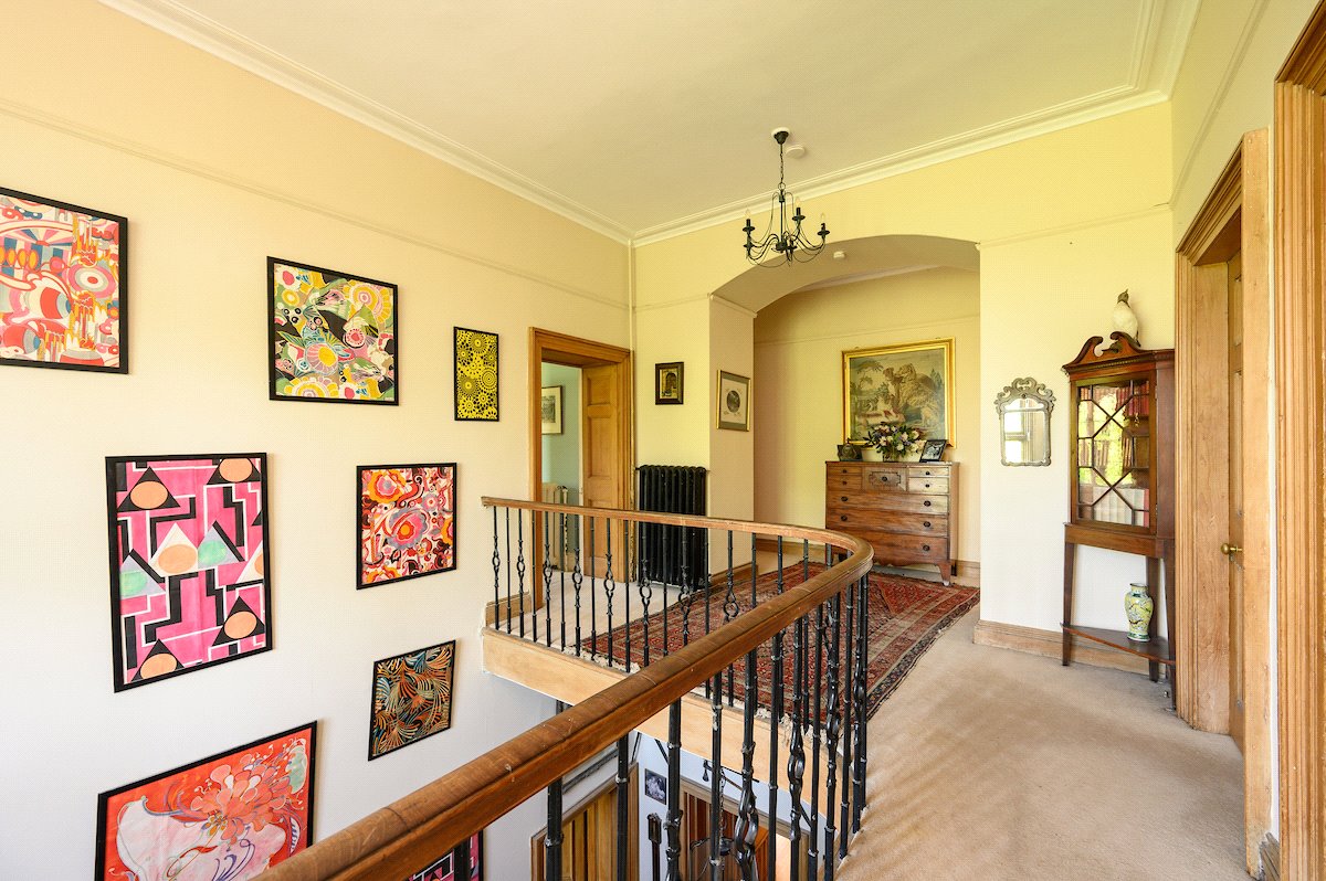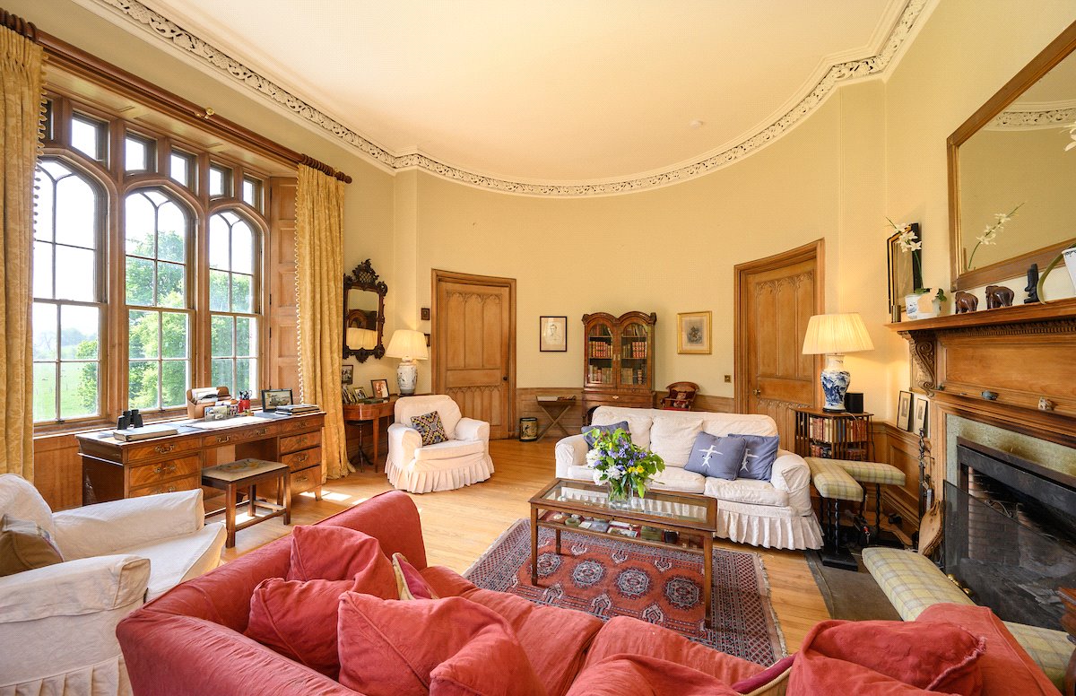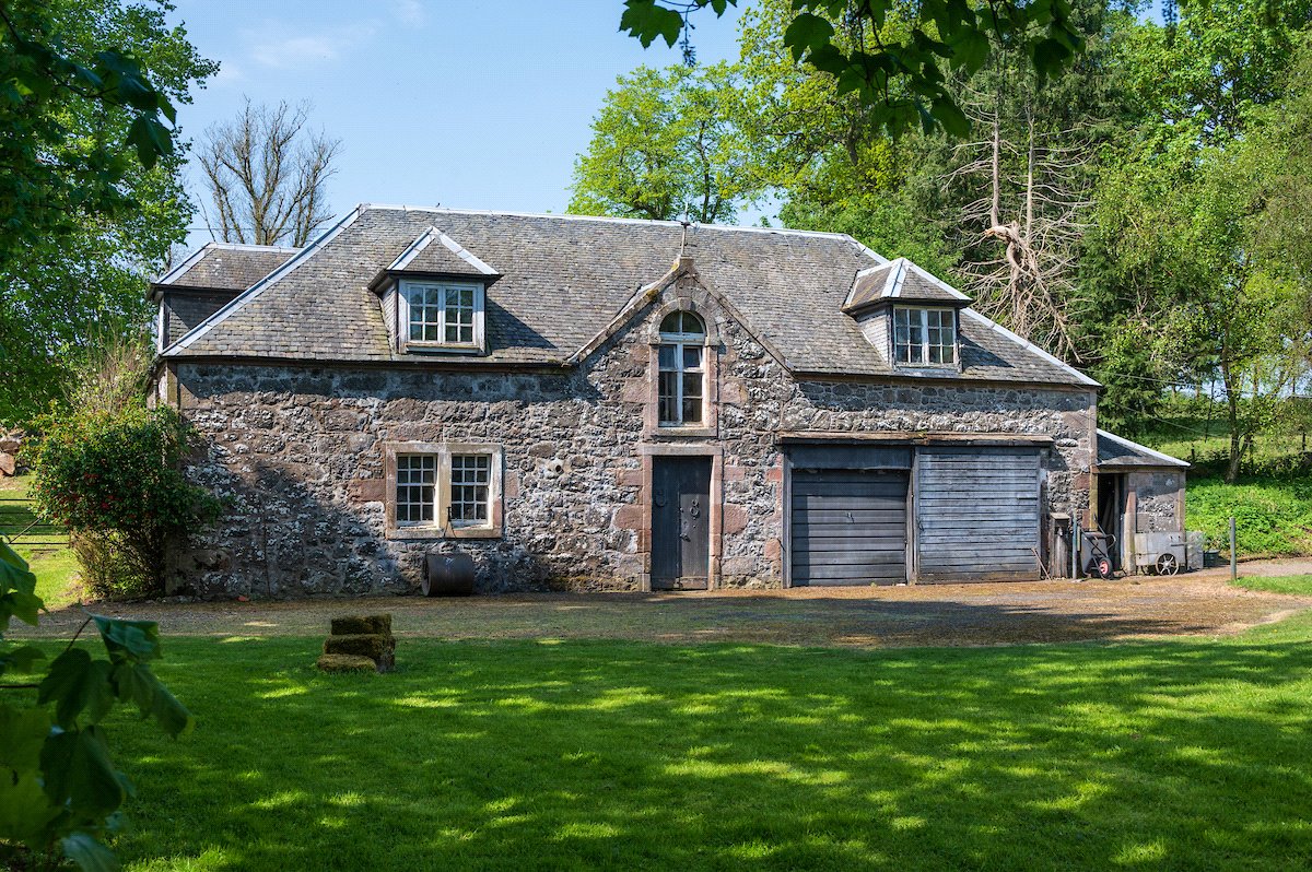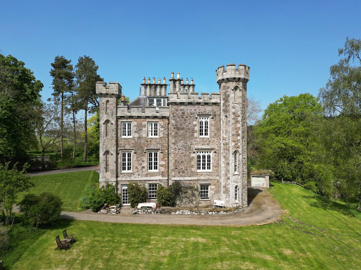An impressive 19th century B listed 7-bedroom country house with exquisite period features, set in 27 acres of gardens, grounds and woodland to include a 3-bedroom cottage, former coach house, tower house ruin and an ornamental loch.
