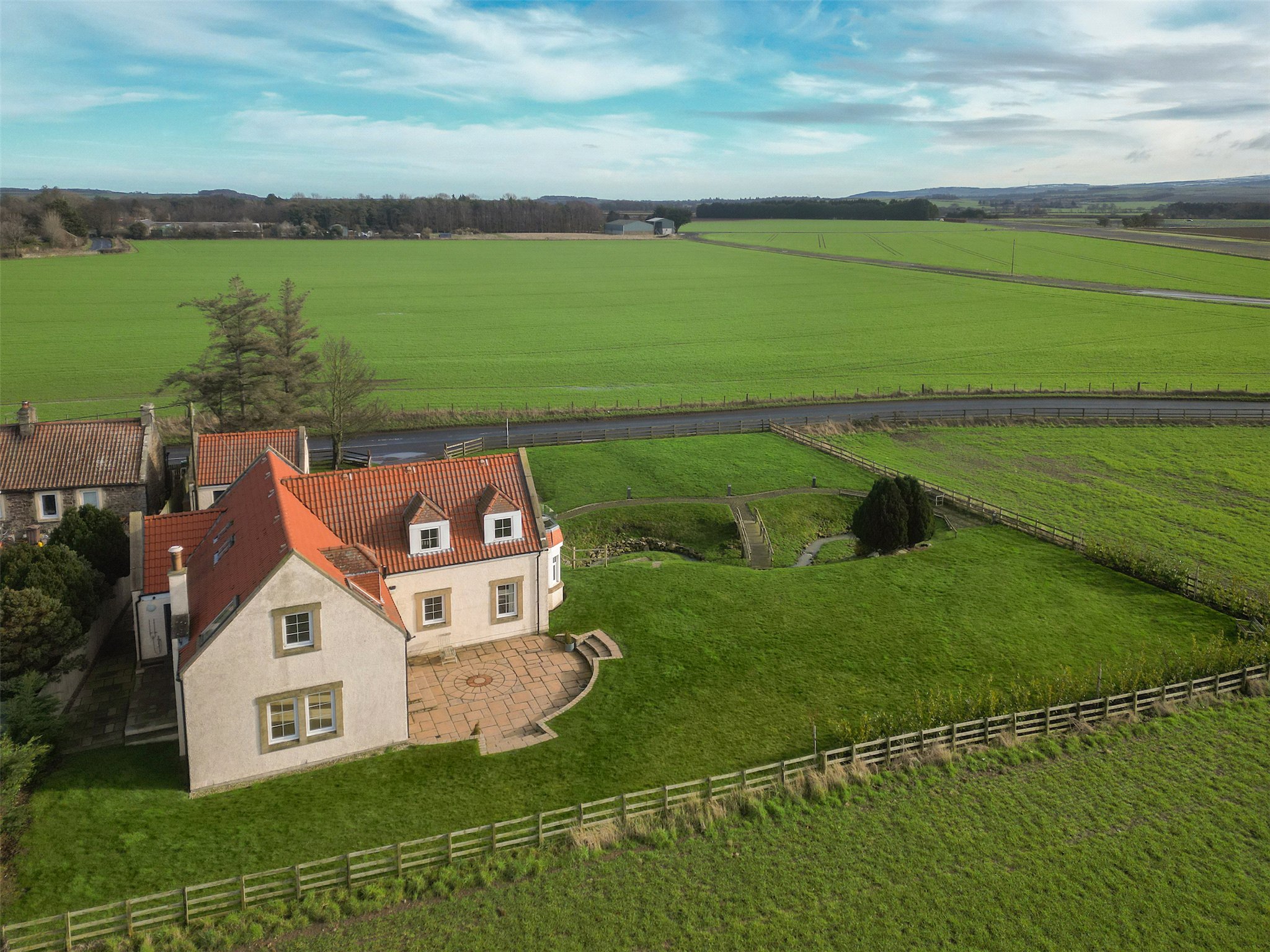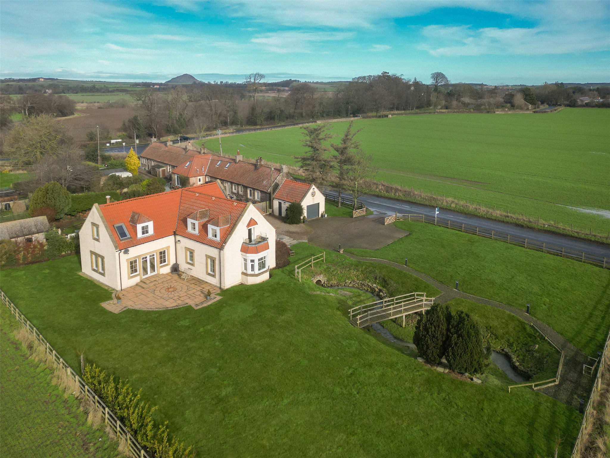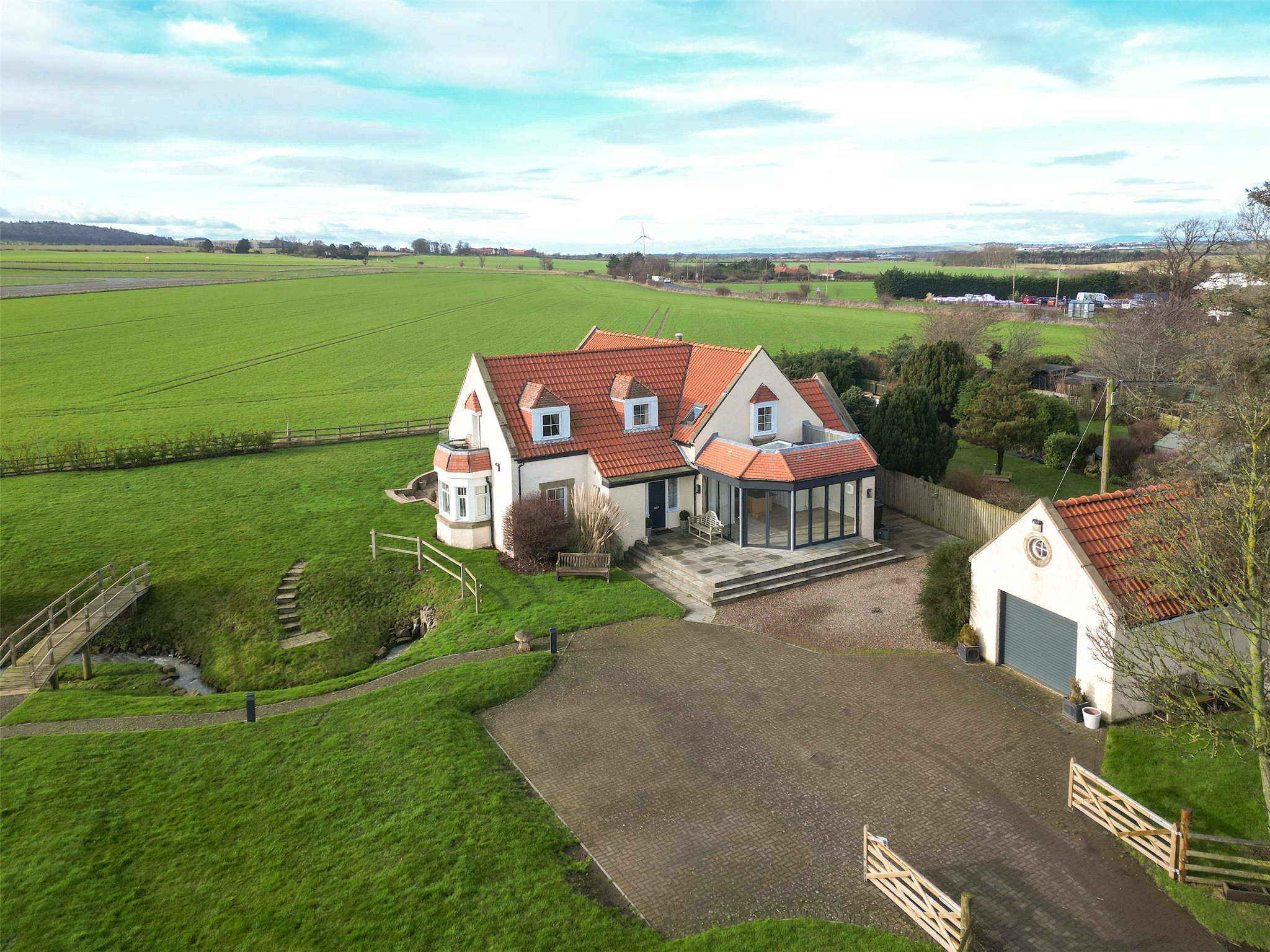 An attractive 4-bedroom detached family home in the heart of East Lothian, offering spacious accommodation and a detached garage, with a large enclosed garden overlooking surrounding countryside.