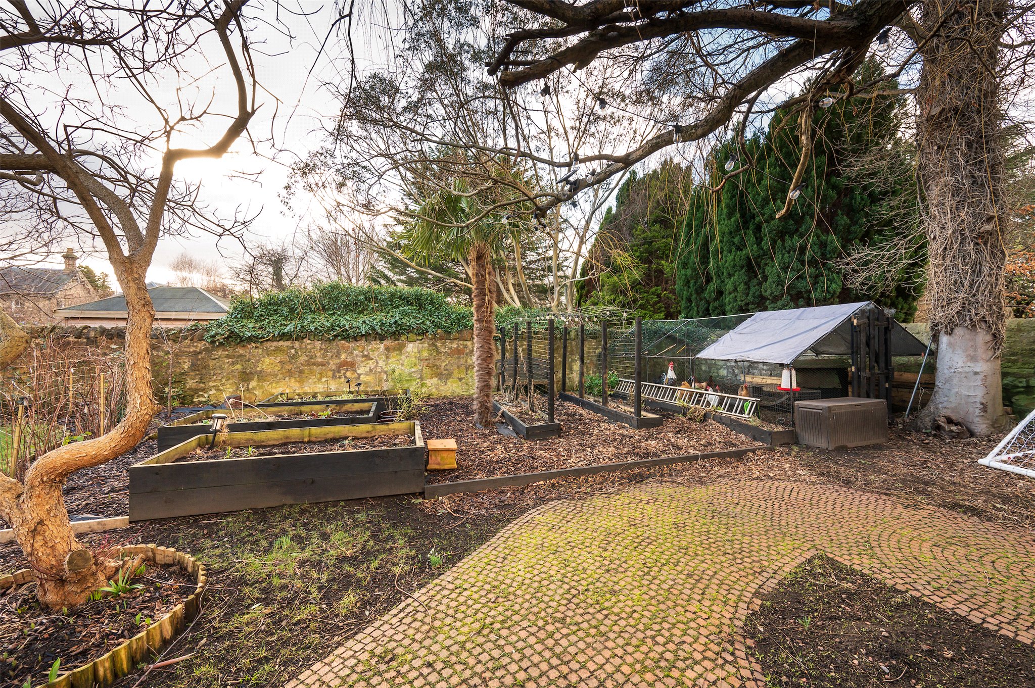 Garden: A generous and secure rear garden measuring 0.15 Acres, with a large lawn and a wide and varied selection of edible fruit trees, berries, and raised vegetable beds. A private 3 car paved driveway to the front with an electric security gate and lockable pedestrian entrance enclosed by well established hedges, with internal herbaceous borders.