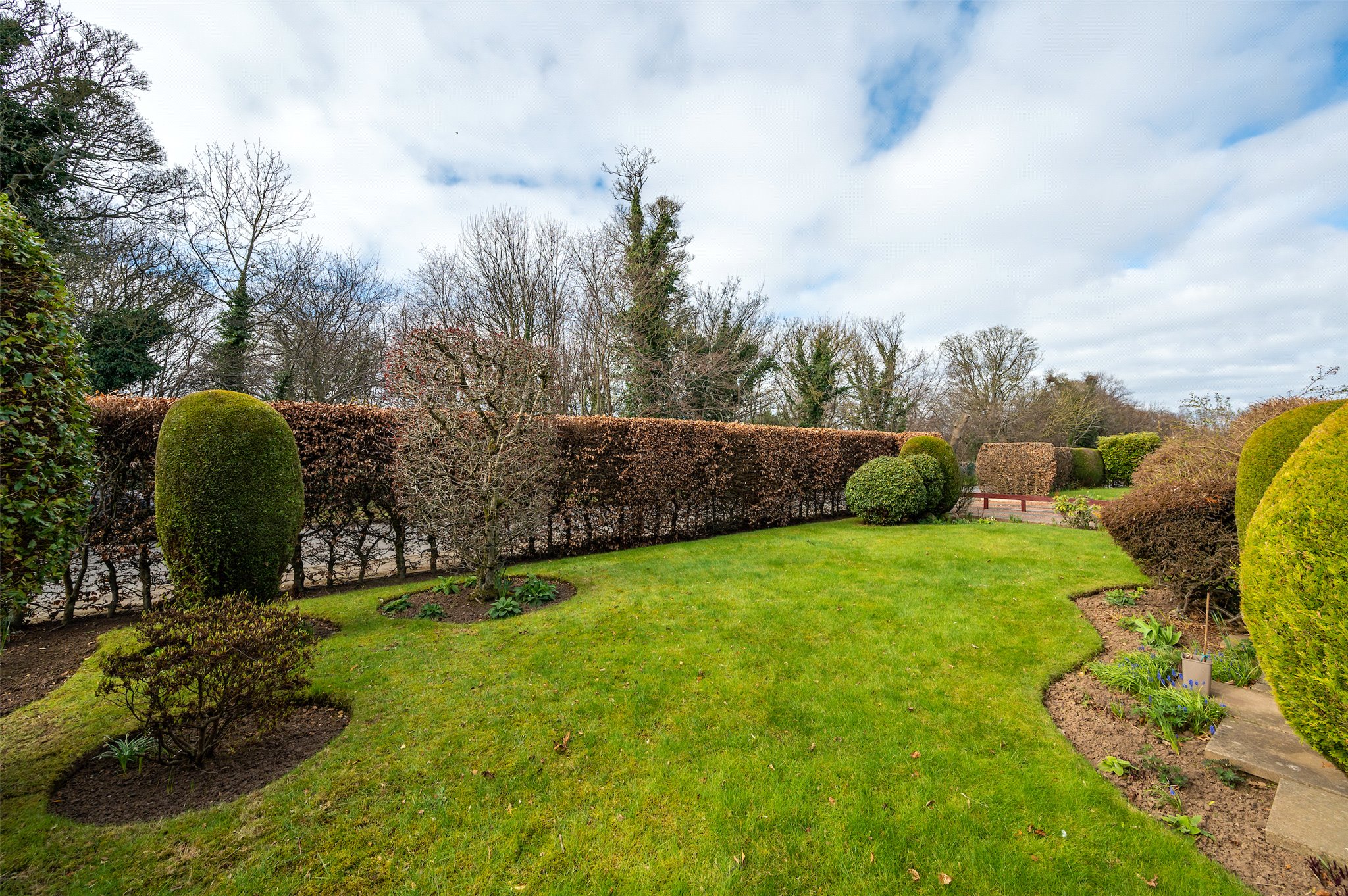 Garden: A generous front and rear garden, both predominantly laid to lawn with colourful herbaceous borders, which are well stocked with mature plants, shrubs and trees. The rear garden also has two patio areas, perfect for alfresco dining.