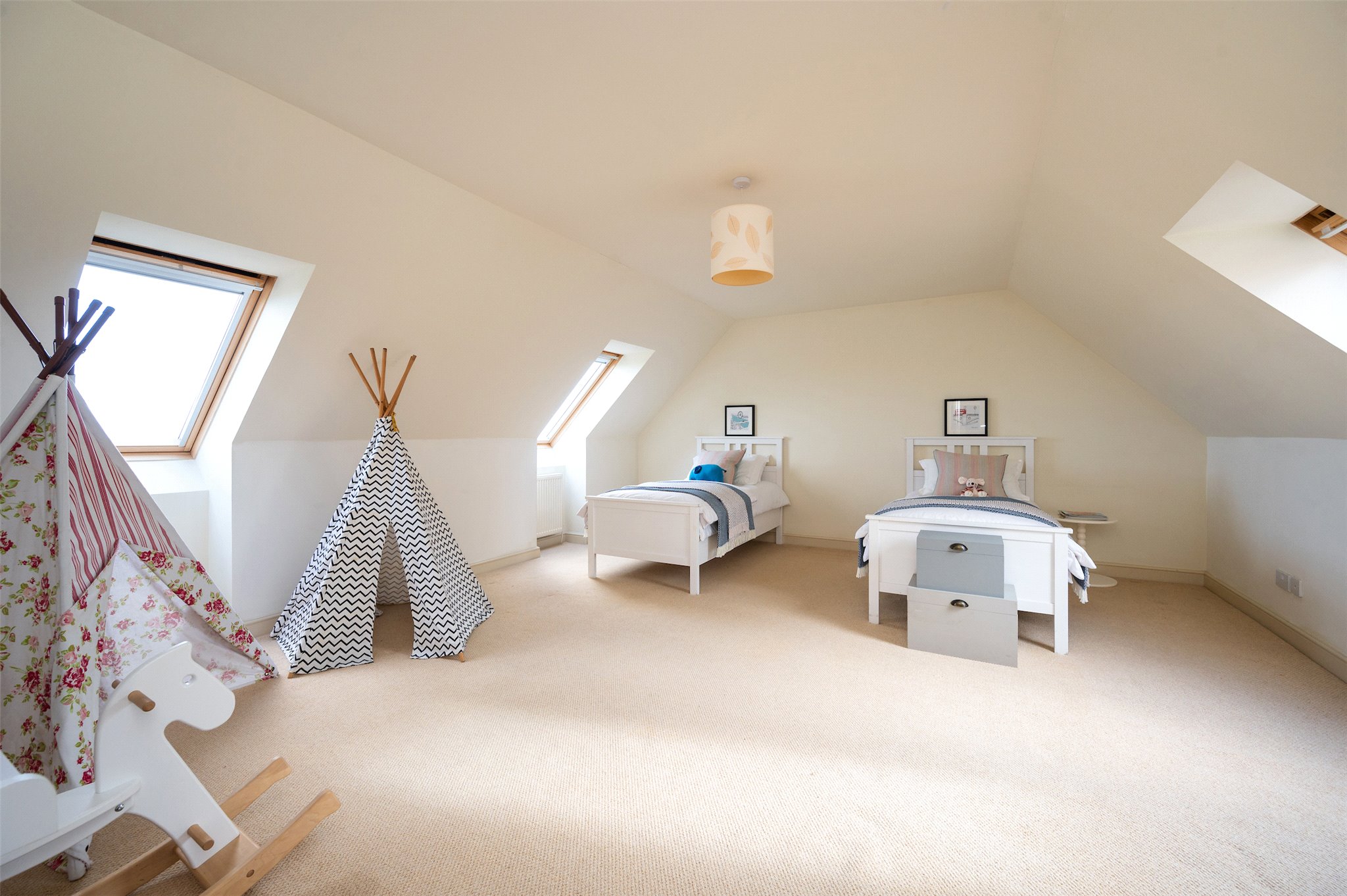 First Floor: Landing, Principal Bedroom with En Suite Shower, a Large Double Bedroom/Sitting Room/Playroom, Two further Double Bedrooms and a Family Bathroom.