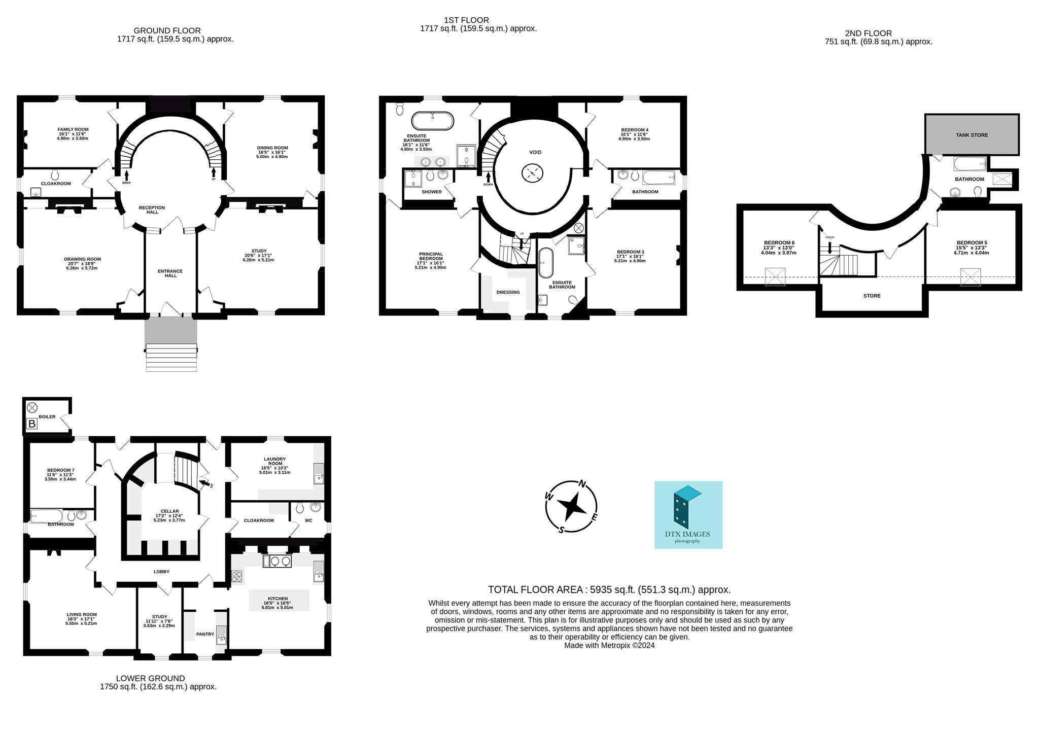 Principal Bedroom with Dressing Room and En suite Bathroom, Bedroom with En suite Bathroom, Four Further Bedrooms, Three Further Bathrooms, and Shower Room.