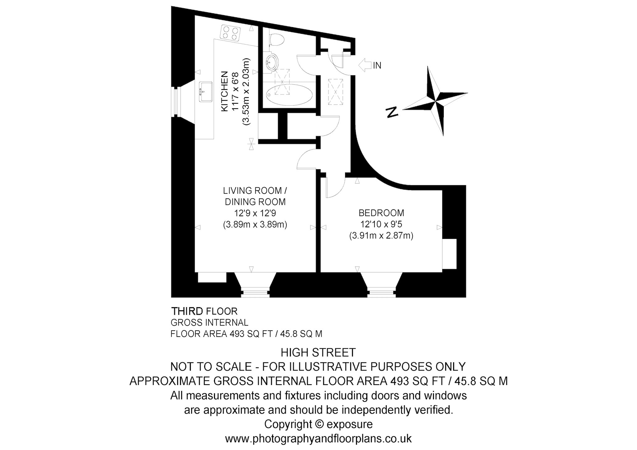 Third Floor: Entrance Hall, Open Plan Sitting-Kitchen-Dining Room, Double Bedroom, Bathroom and Two Hall Cupboards.