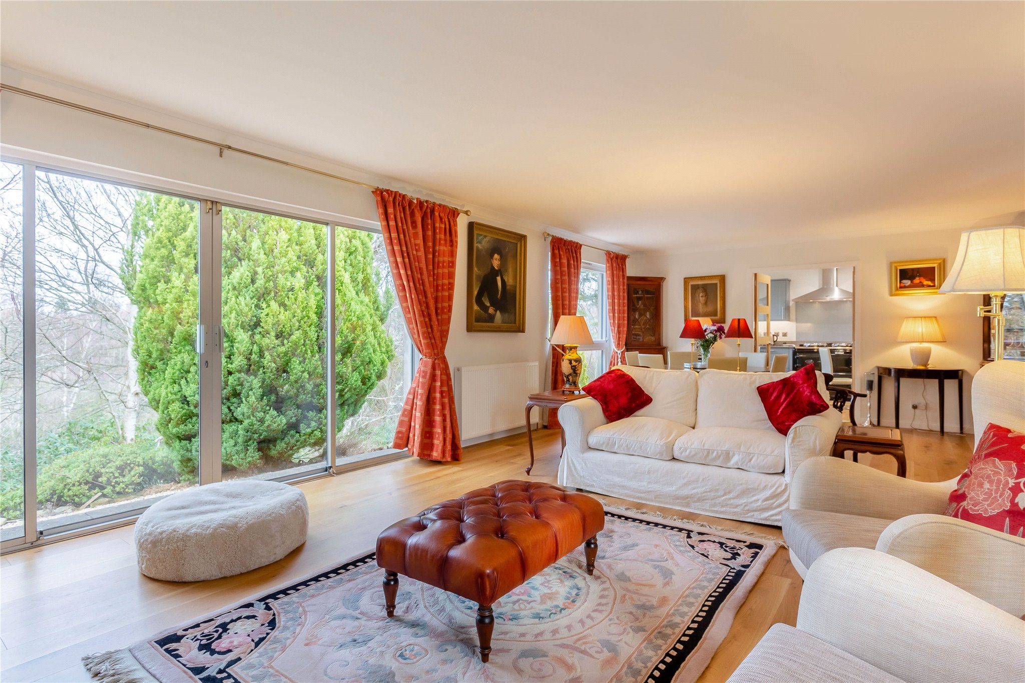 The garden at the front and side provides an area of lawn, paved and gravel pathways and various border shrubs, while at the rear there is further patio space for al fresco dining, with steps and a walkway leading to a peaceful wooded area overlooking Sanquhar Loch. The gravel driveway and detached garage provide parking space, as well as home and garden storage.