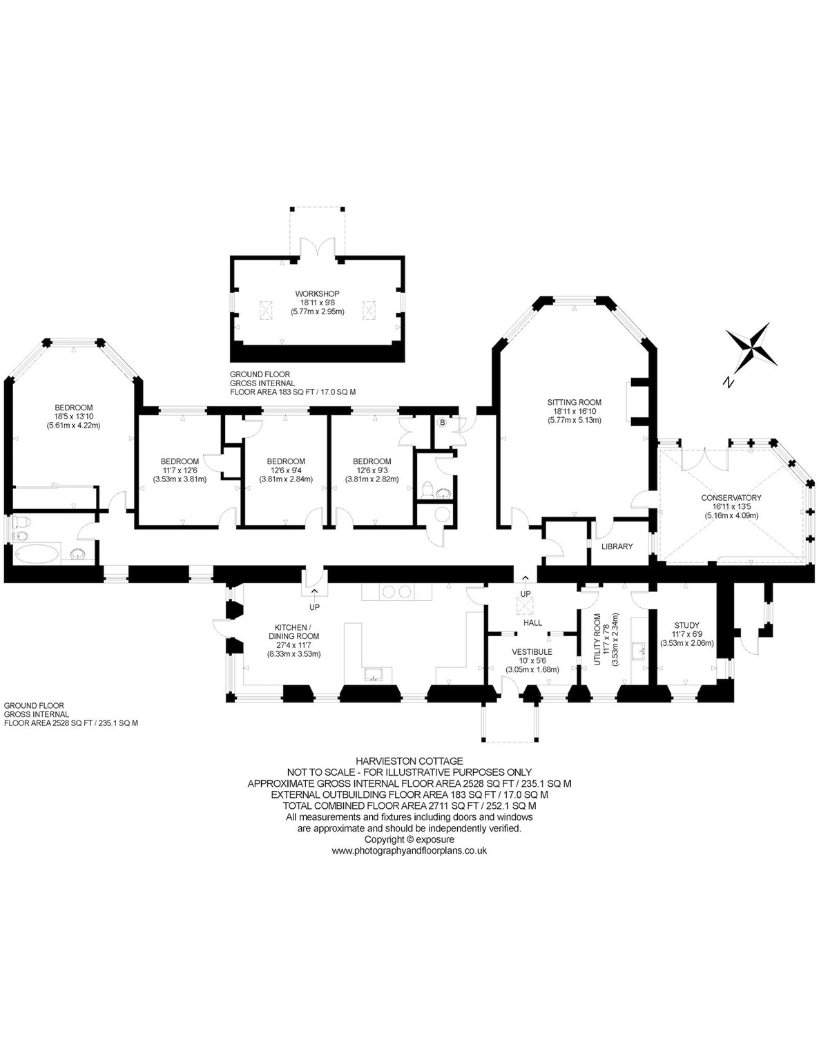 Porch, Vestibule, Hall, Sitting Room, Conservatory, Kitchen open to Dining Room, Study, Utility Room, Inner Hall, Cloakroom, Principal Bedroom, Three Double Bedrooms and a Family Bathroom.
