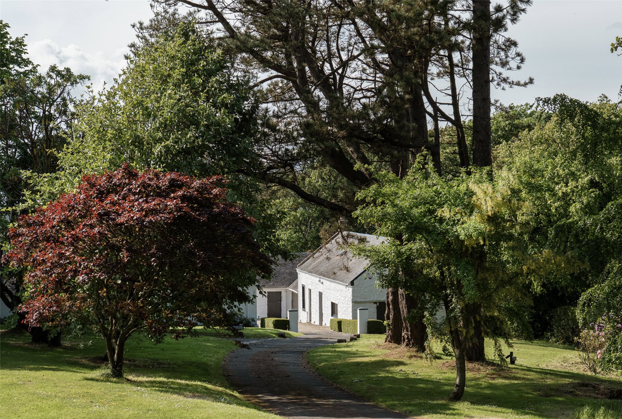 Beneath a large walled garden lies a mature woodland glen with a burn flowing to the sea. A private footpath follows the stream through the glen and leads directly to the property’s private shoreline. Throughout the year, the landscape transforms with the seasons, supporting a variety of flora and fauna.