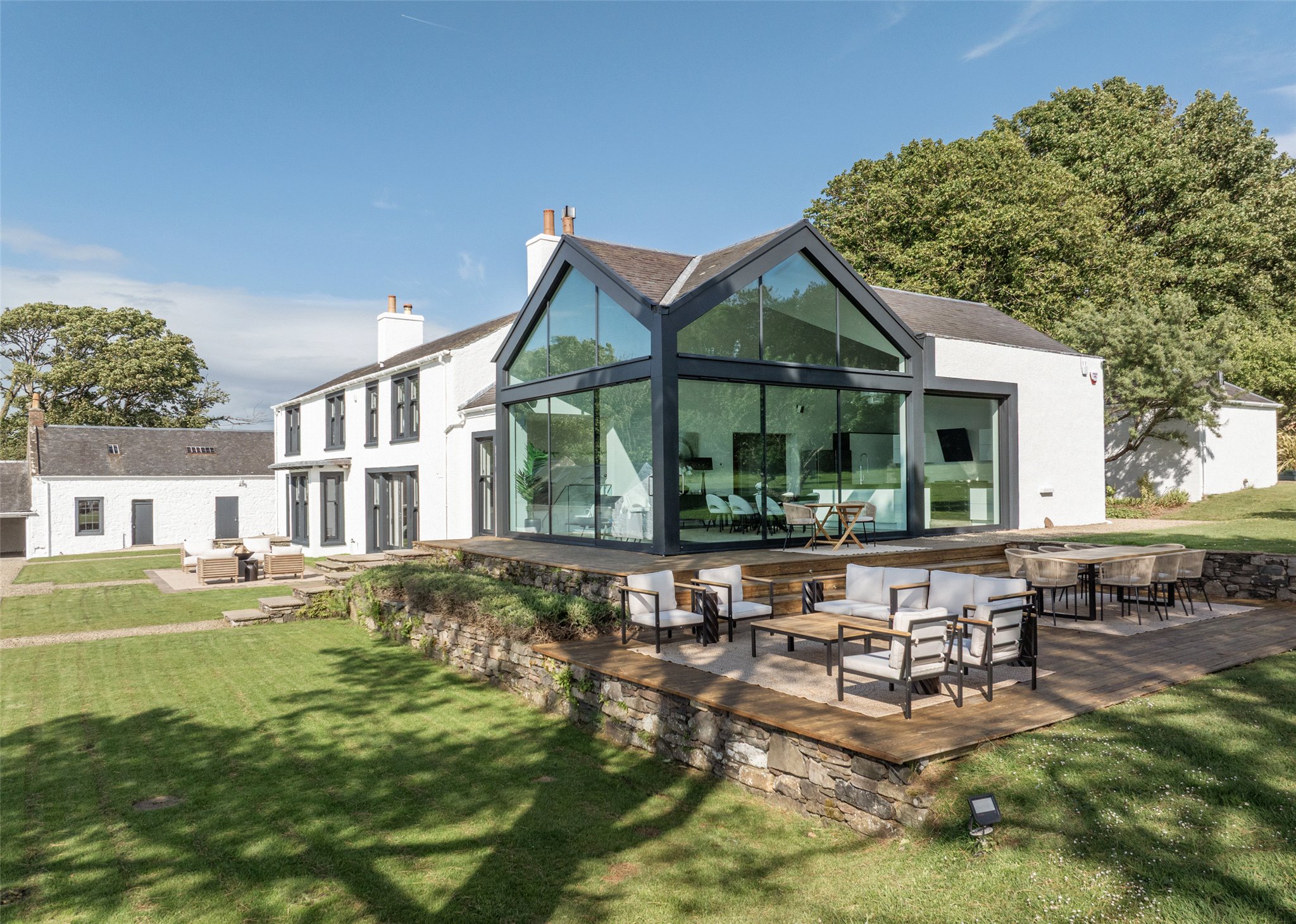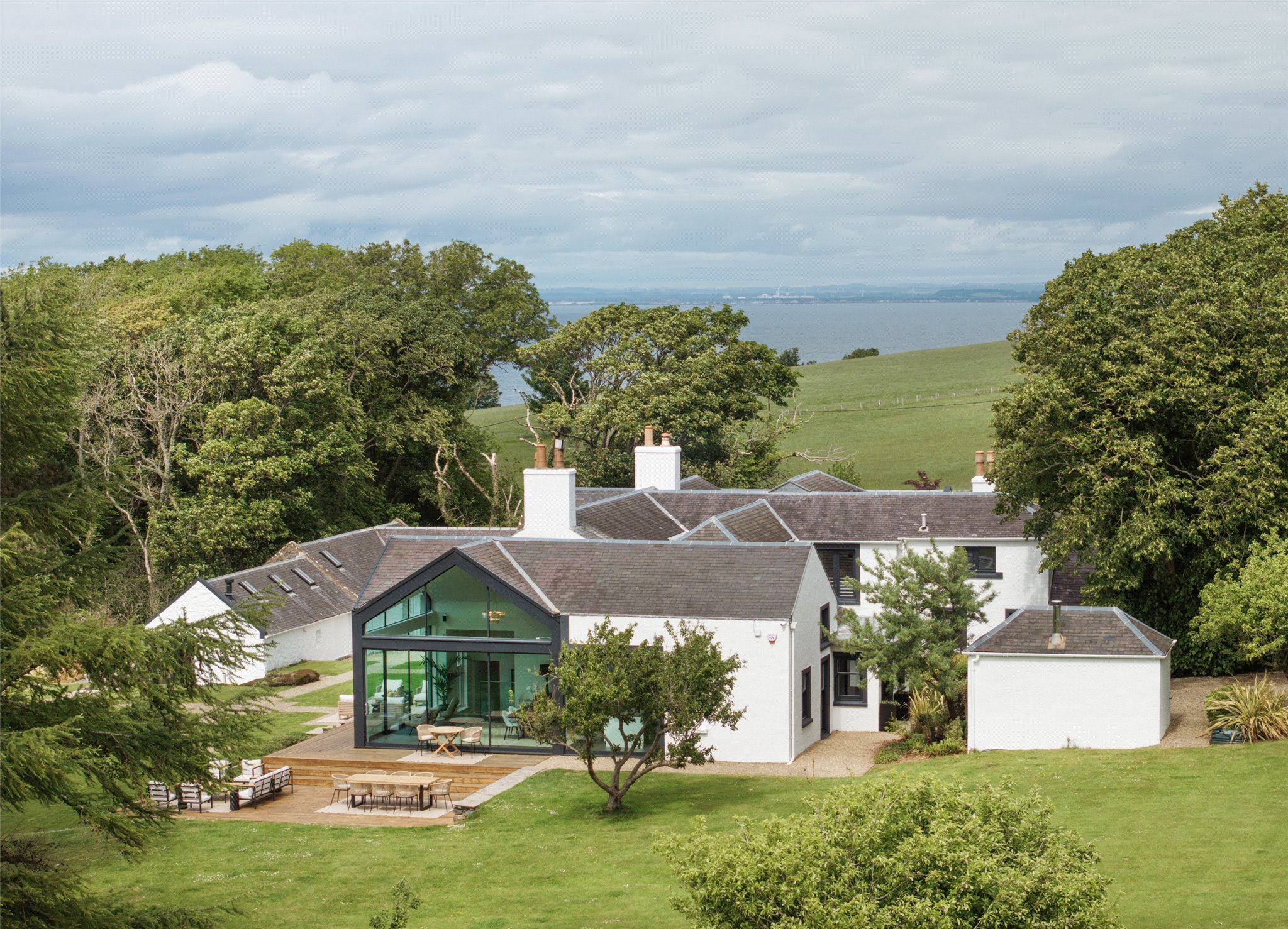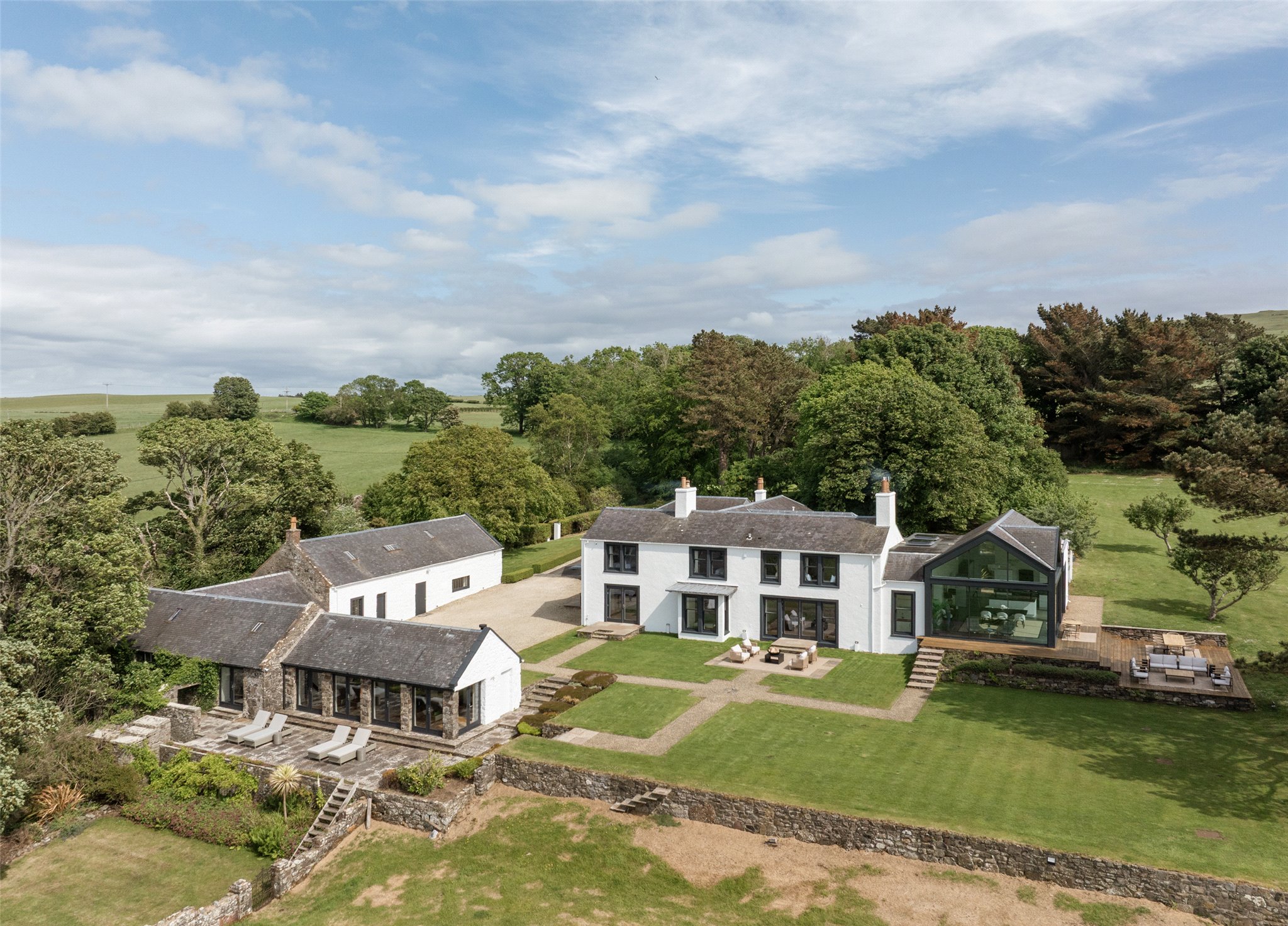Key Property Features • Six bedrooms including four en suite • Glass-walled living spaces with sea views • Approx. 53 acres of IACS-registered land • Approx. 400 yards of private shoreline • Woodland glen with burn and path to beach • Outbuildings with potential (STPP) Outbuildings with potential (STPP), including one with gym, sauna, and spa